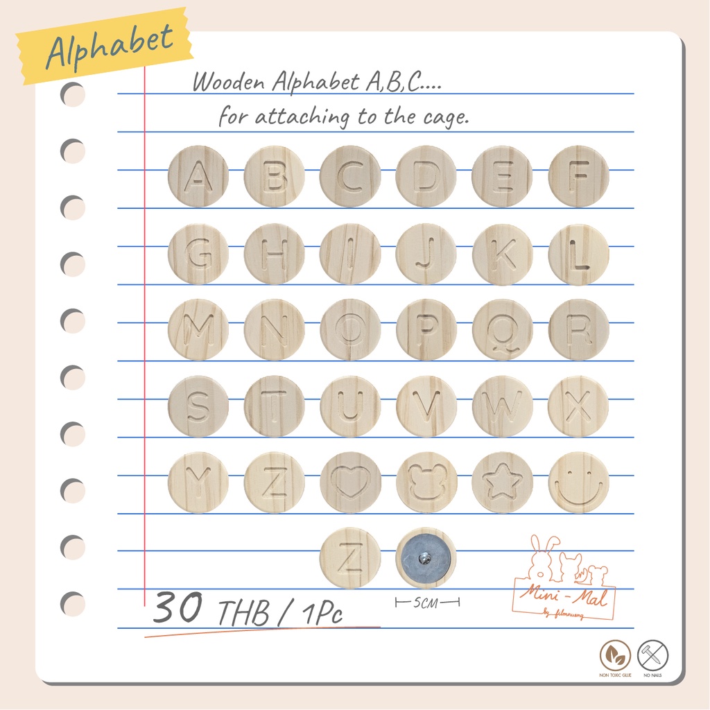 Mini-Mal by filmnueng Alphabet ตัวอักษรไม้ ชื่อ ติดกรง แต่งกรง สัตว์เลี้ยง ไม้สน ชินชิลล่า ชูก้า แฮมเตอร์ กระต่าย นก
