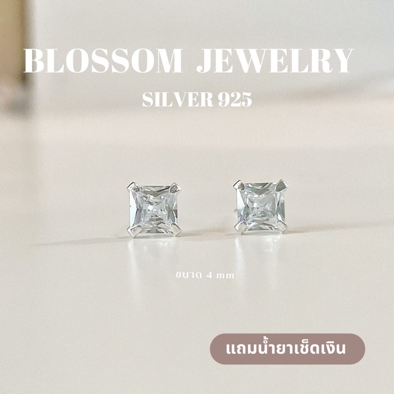 The.blossom.silver | ต่างหูเพชรทรง สี่เหลี่ยม 4 มิล | ราคาต่อคู่ | ต่างหูเงินแท้92.5% ต่างหู ตุ้มหู