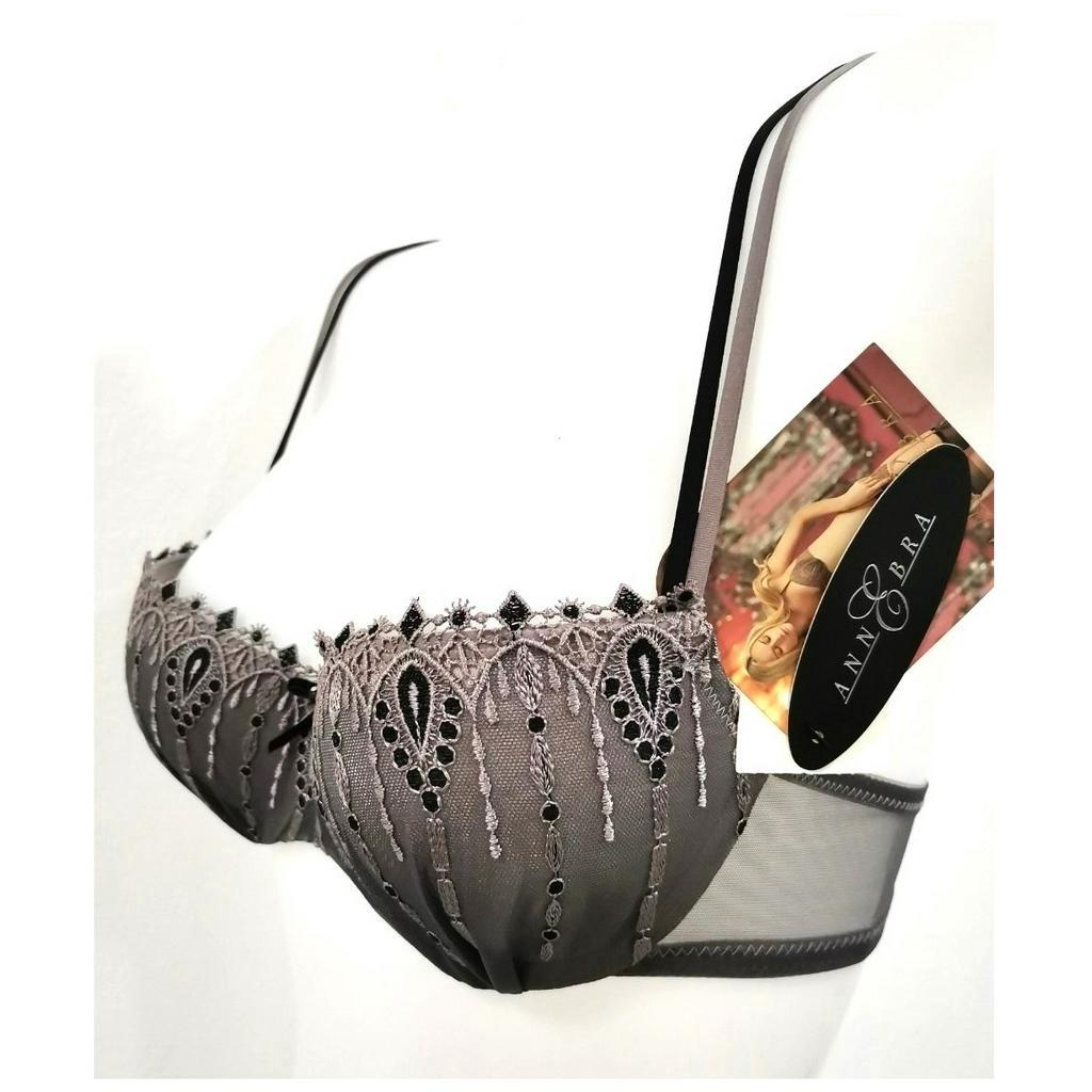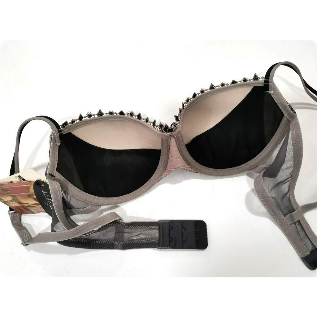 Annebra บราเสริมทรง ตะขอหลัง ทรง1/2เต้า มีโครง เสริมฟองน้ำ Push Up Mold Bra รุ่น AB1-544 สีเทา-ดำ