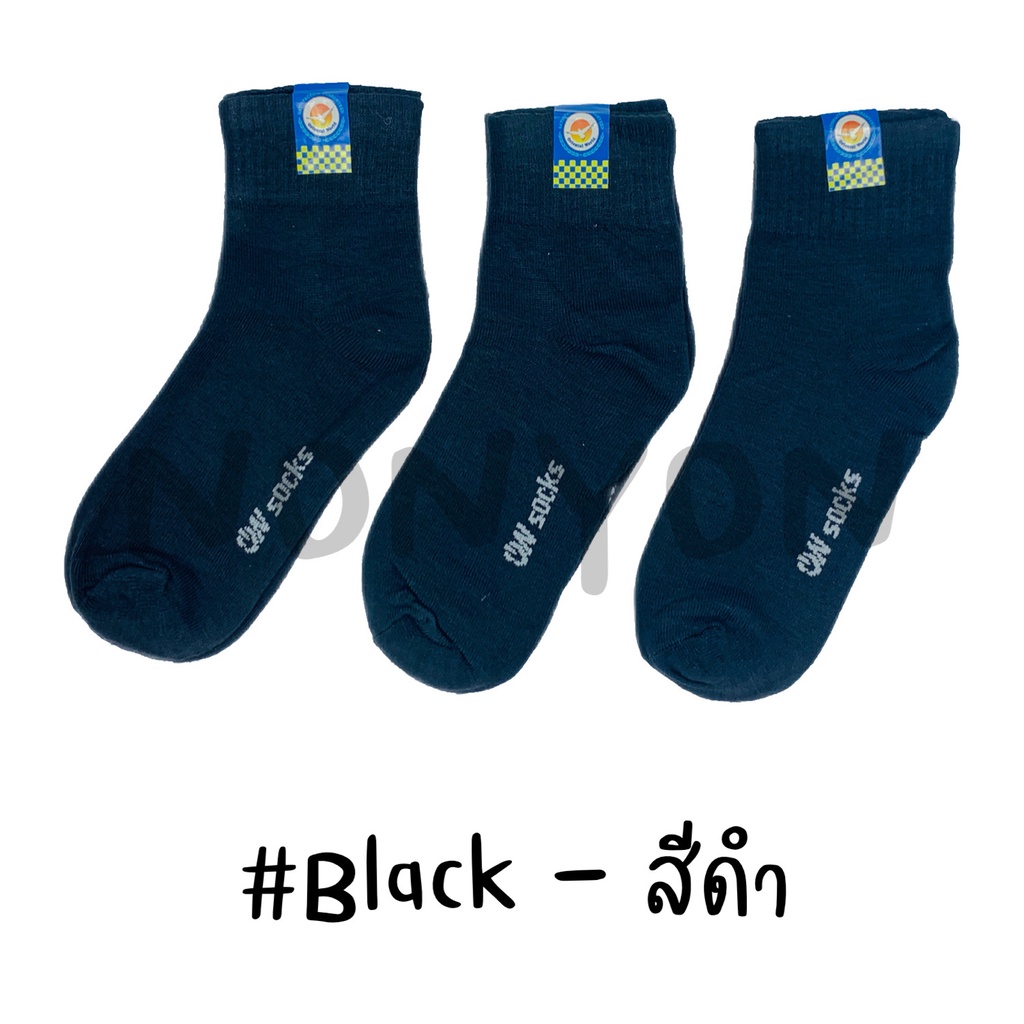 {แพ็ค12คู่} ถุงเท้าข้อกลางสีพื้นOW 804 แพ็ค 12 คู่ 1 สี Freesize
