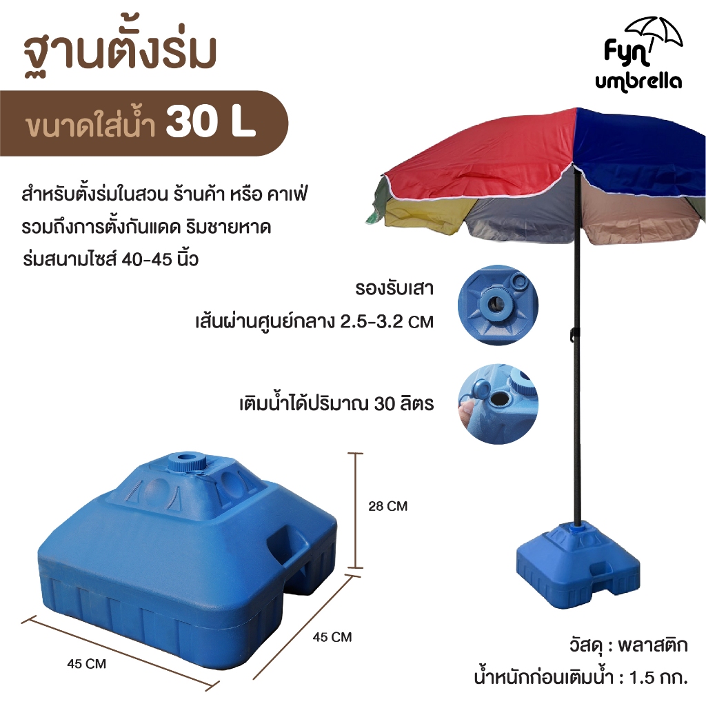 ขาตั้งร่มแบบเติมน้ำ 30L ใช้รวมกับร่มสนาม ร่มแม่ค้า ร่มชายหาด