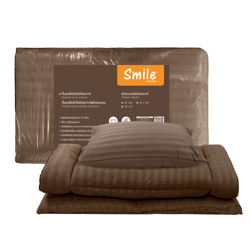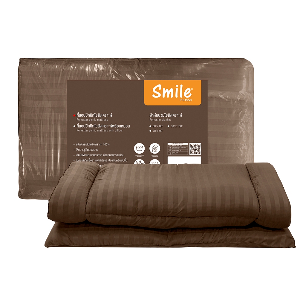 Picasso ที่นอนปิกนิค รุ่น Smile ลายริ้ว สีน้ำตาล ผ้าไมโครซาติน เทียบขนาด 3.5 ฟุต หนา 5 ซม.