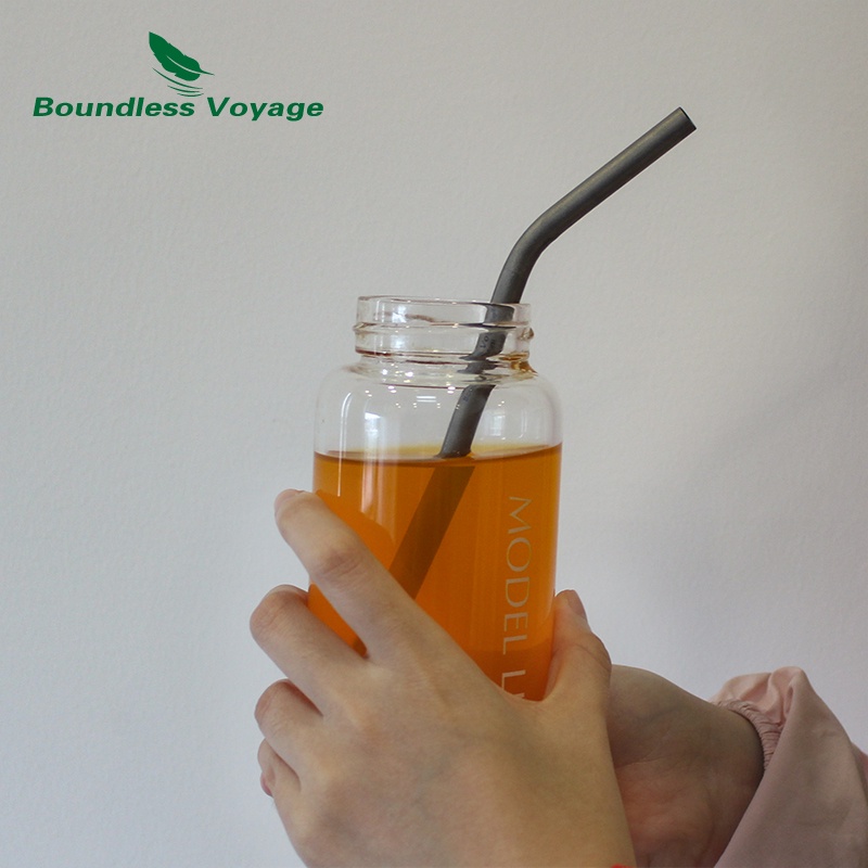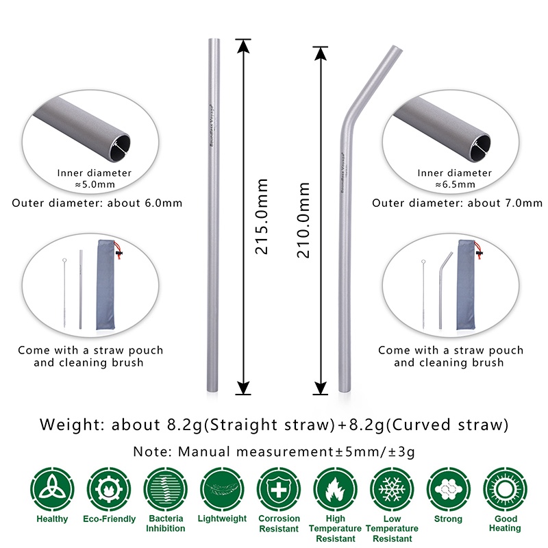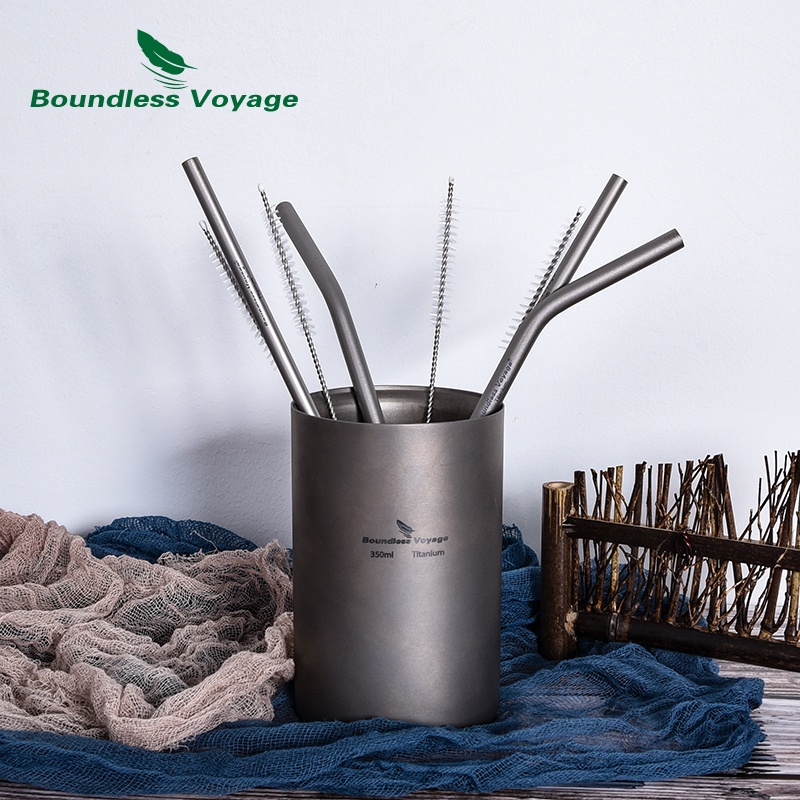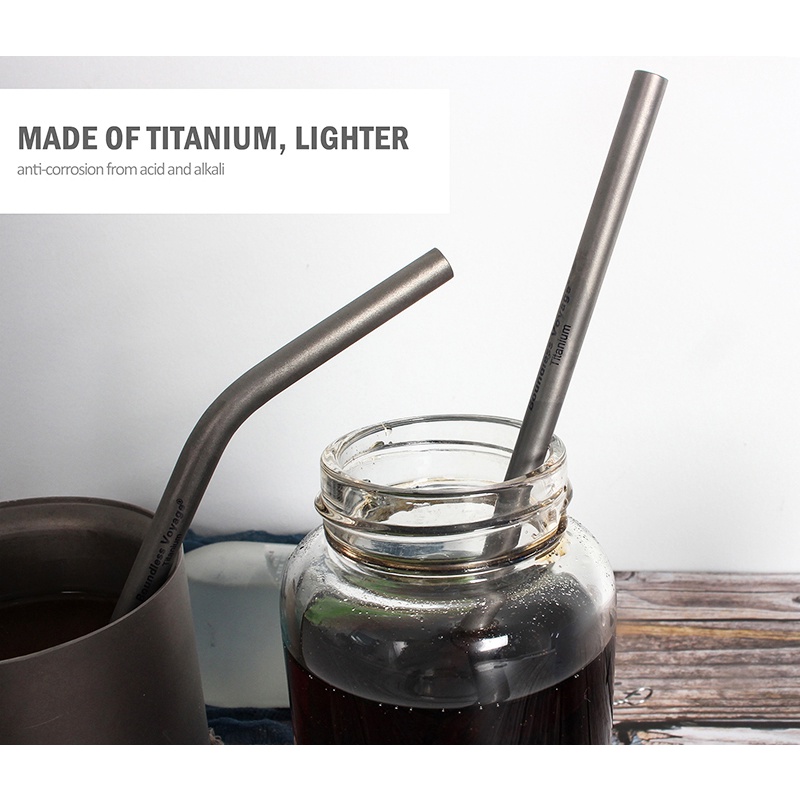 หลอดไทเทเนียม พร้อมแปรงทําความสะอาด ใช้ซ้ําได้ สําหรับกาแฟ ชา โยเกิร์ต