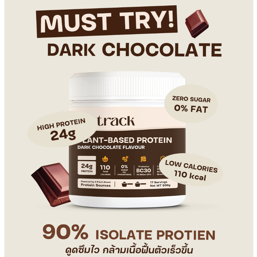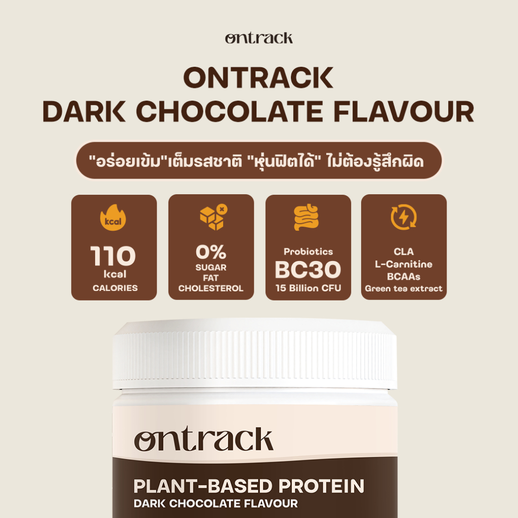 ใหม่! สูตรอัพเกรด Ontrack โปรตีนพืช รสดาร์กช็อก (Plant Protein) 500g 17 servings