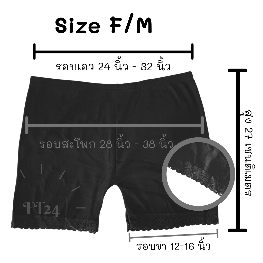 กางเกงซับใน 1 ตัว สีเนื้อ/สีดำ ขาระบาย ขาธธรรมดา ผ้าคอตตอน ฟรีไซส์ อย่างดี แบรนด์ไทย ABN