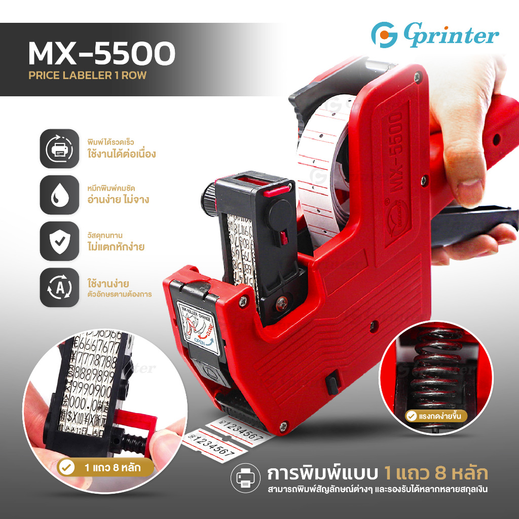 Gprinter ปืนยิงราคา MX-5500 ปืนยิงป้ายราคาสินค้า เครื่องติดราคาสินค้า ที่ตีราคา 8หลัก Price Labeler