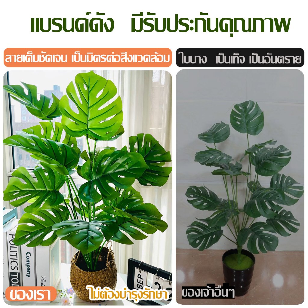 🔥ราคาถูกที่สุด🔥XY มอนเสตอร่า ต้นไม้ปลอม ฟรีกระถางดอกไม้ต้นไม้+หินตกแต่ง ความจำลอง 99% สไตล์นอร์ดิก ในบ้าน