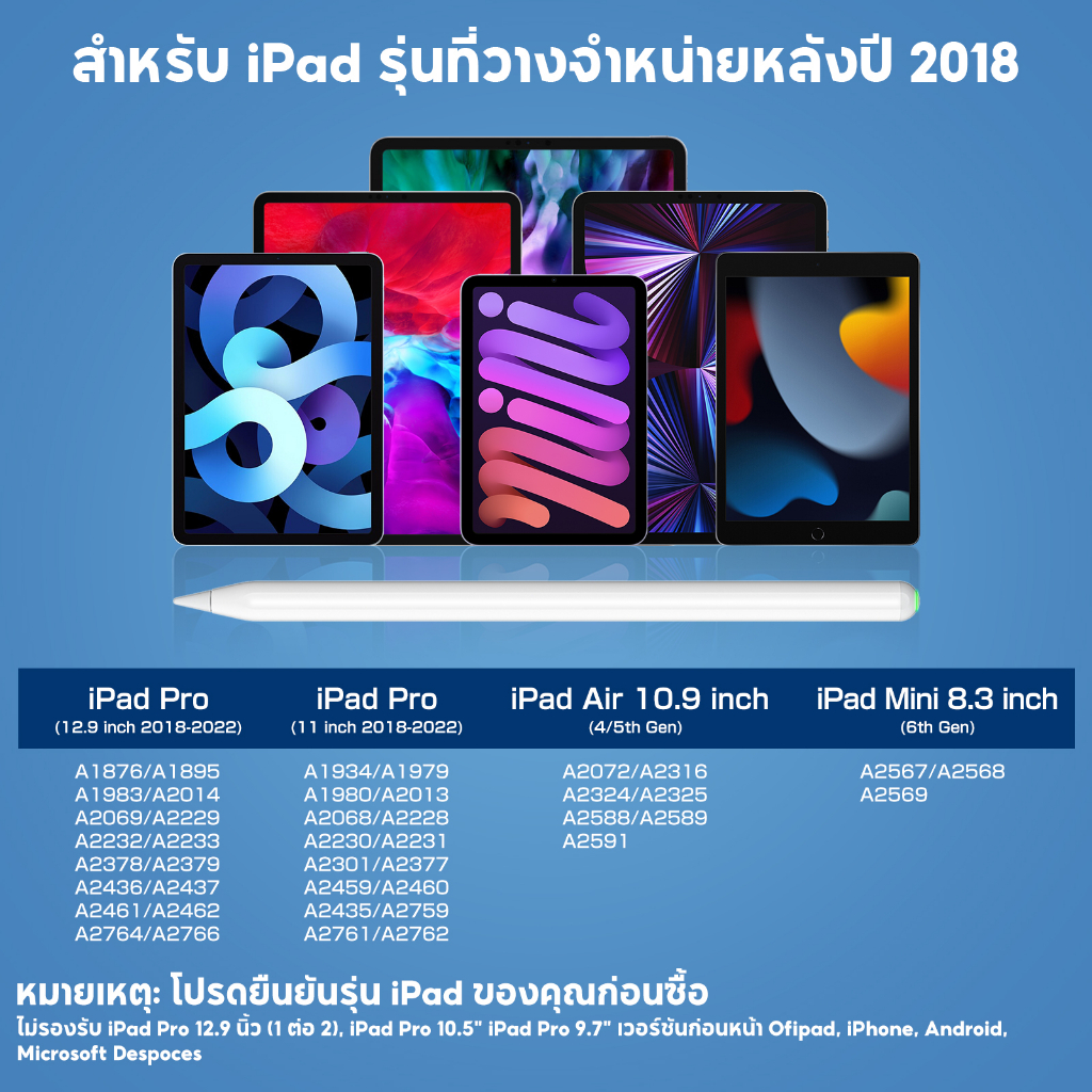 [การชาร์จแบบแม่เหล็ก P8💞]ปากกาไอแพด วางมือบนจอ+แรเงาได้ Stylus Pen สำหรับไอแพด Air5 Air4 Mini6 Pro11 Pro12.9 ปากกาสไตลั