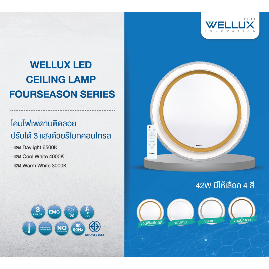 WELLUX โคมไฟเพดานติดลอย 3 แสง 42W มีรีโมท LED Multi-Smart Ceiling Lamp รุ่น FOUR SEASON SERIES