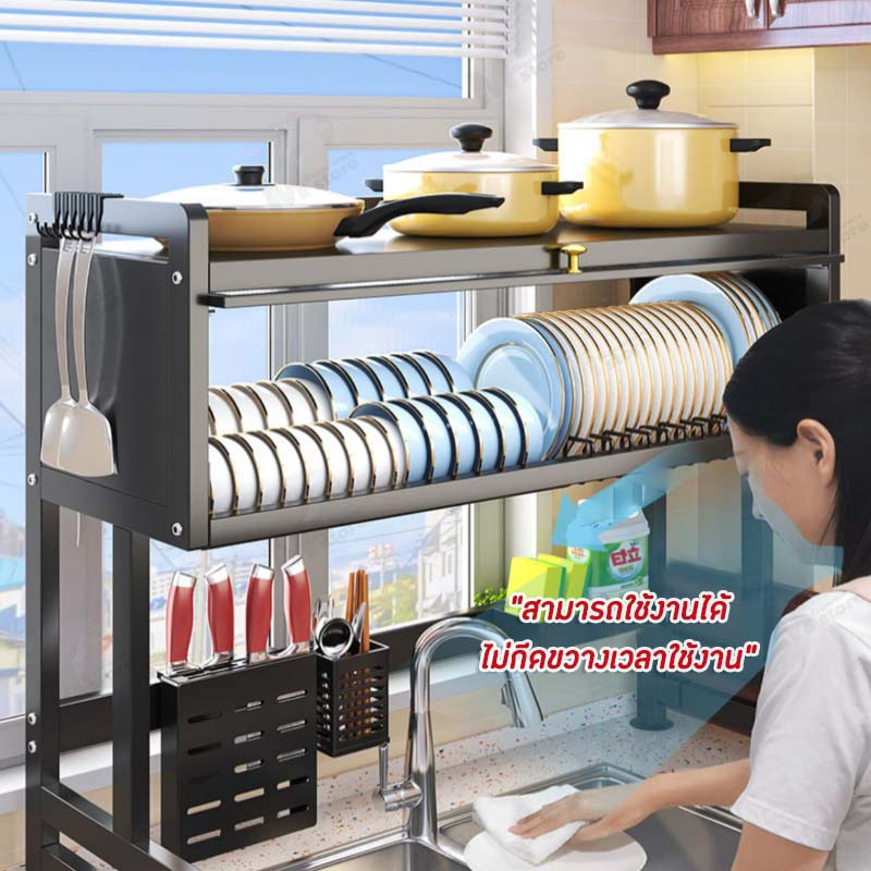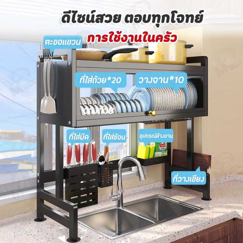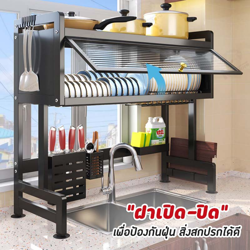 [ตู้เก็บจานมีฝาปิด] ชั้นวางของในครัวแบบ คร่อมอ่างล้างจาน มีช่องใส่ช้อนส้อม+มีด มีฝาป้องกันฝุ่นละออง TB0