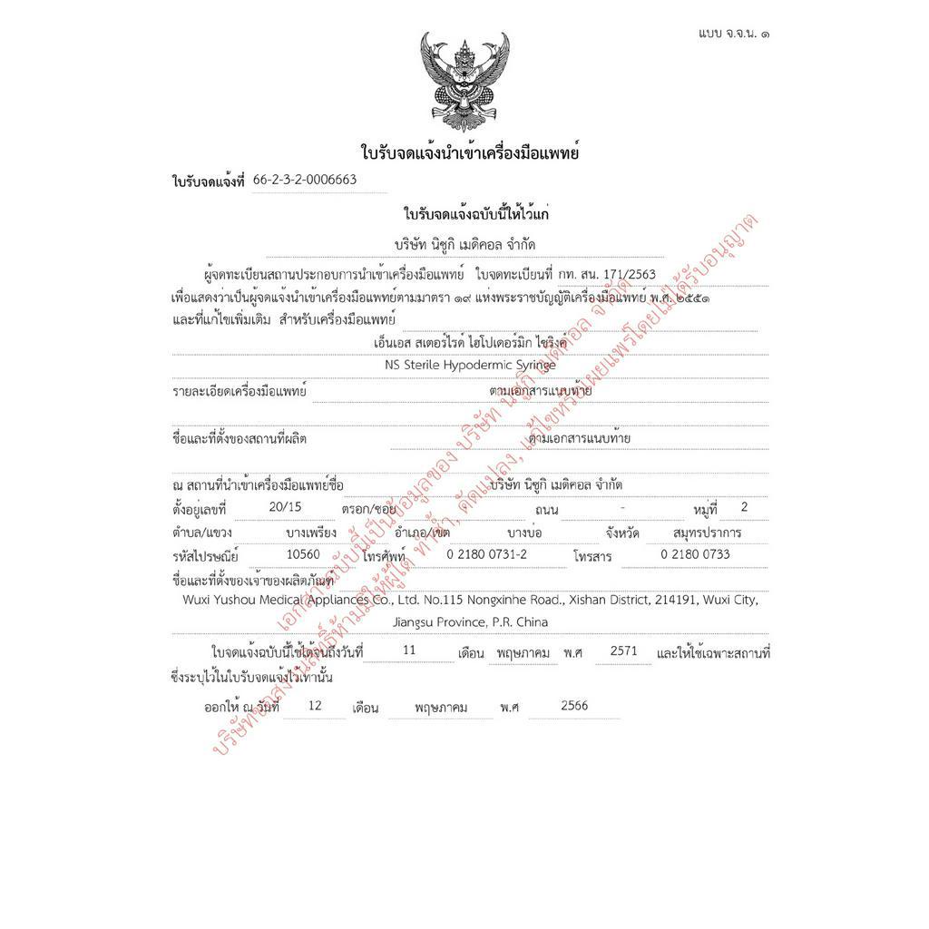 หลอดฉีดยา NS ขนาด 10 ml. 1 กล่อง บรรจุ 100 ชิ้น เลข อย. 66-2-3-2-0006663