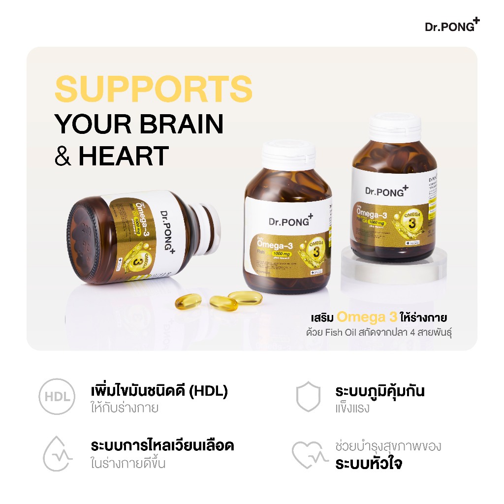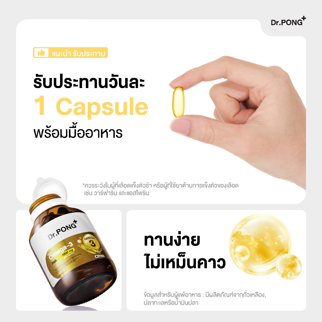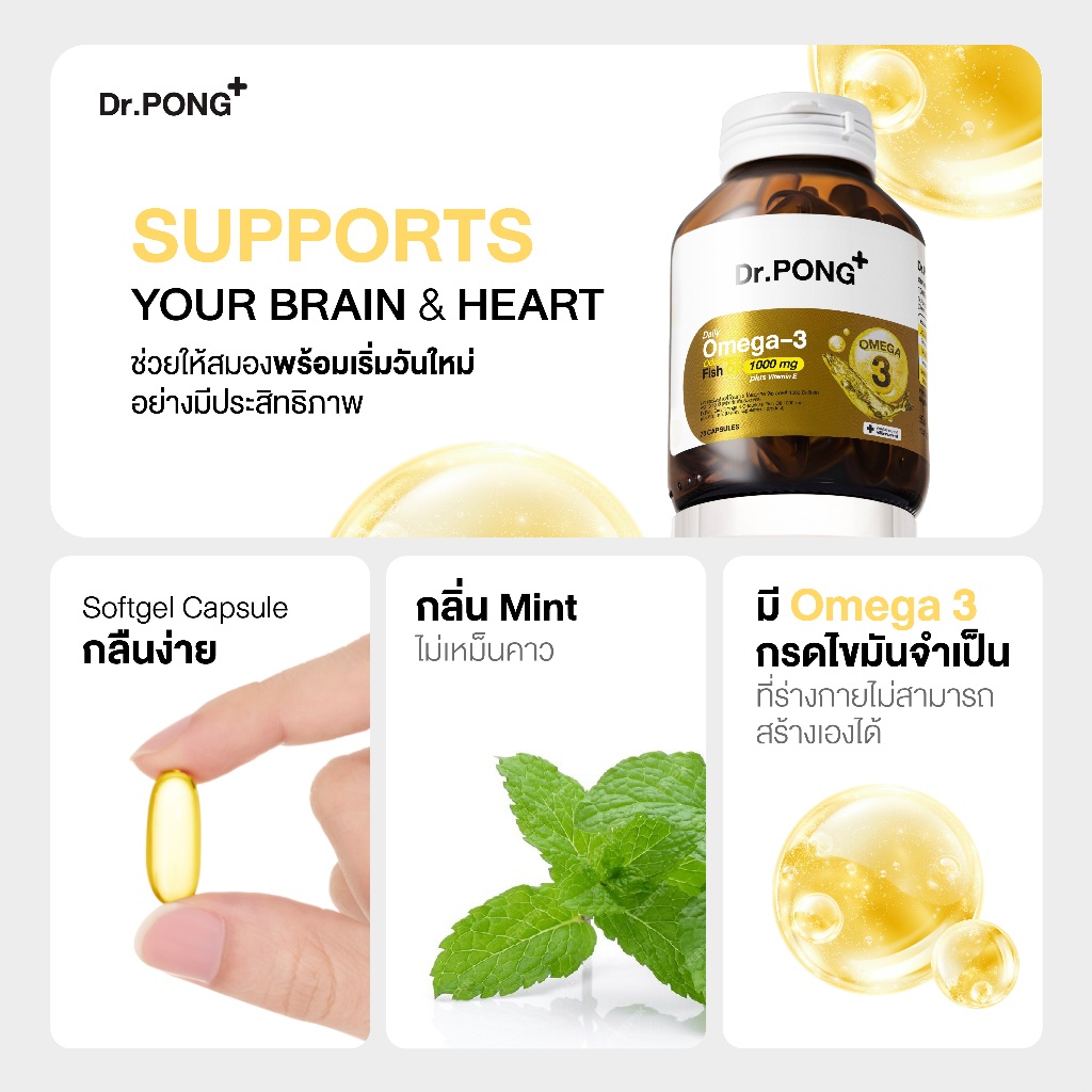 Dr.PONG Daily Omega 3 odourless fish oil 1000 mg plus vitaminE โอเมก้า3 โอเดอร์เลส ฟิชออยล์ น้ำมันปลา