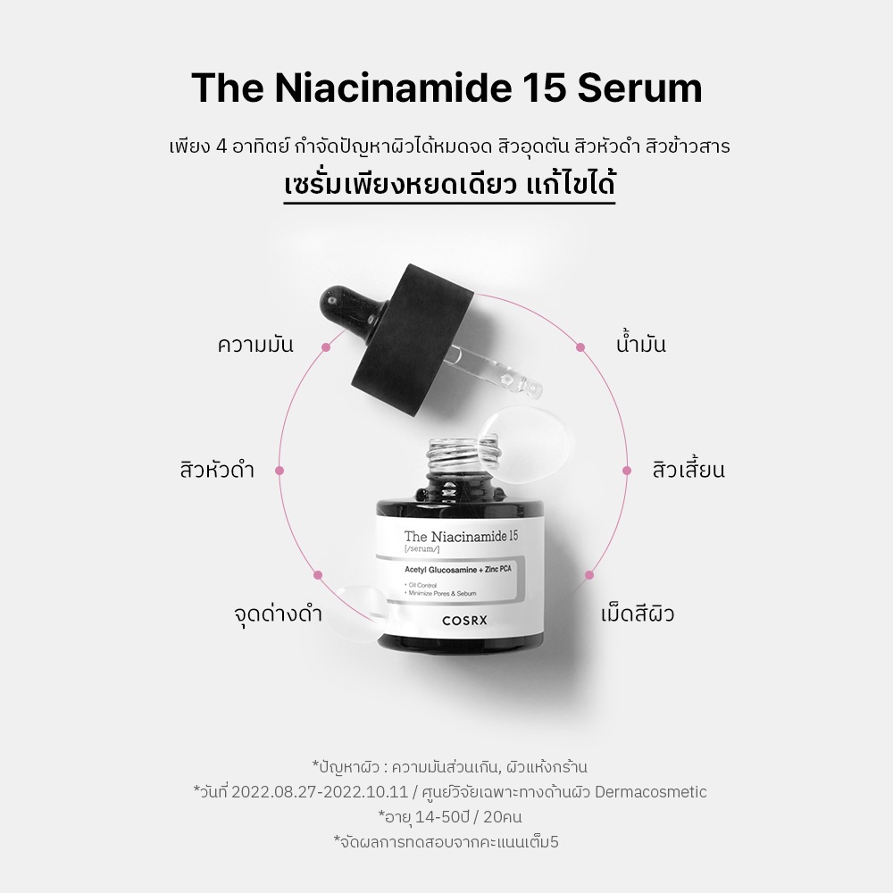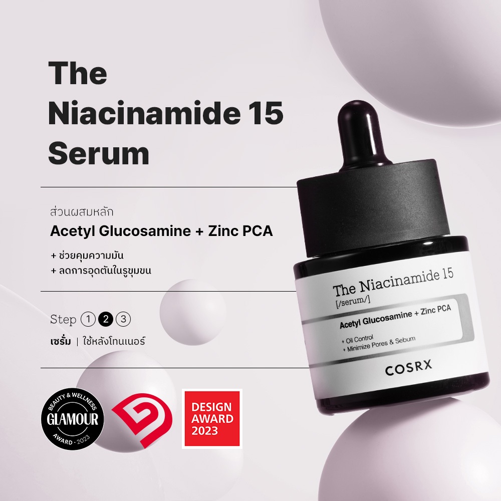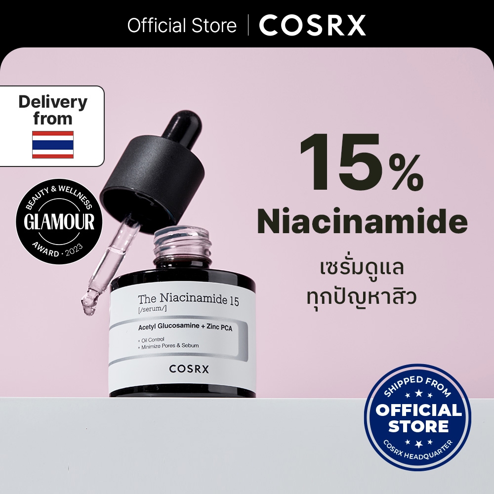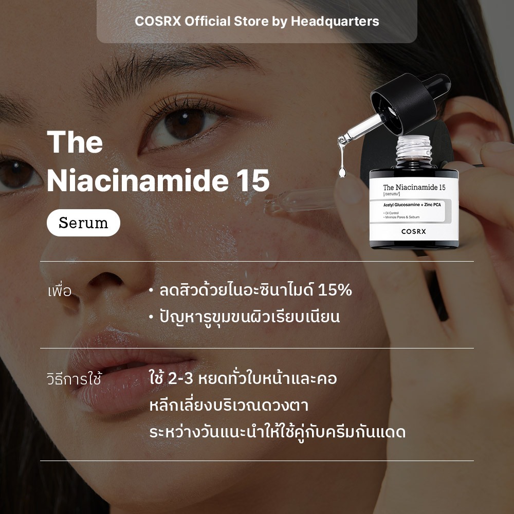 [COSRX OFFICIAL] The Niacinamide 15 20ml เดอะ ไนอะซินาไมด์ 15 (เซรั่ม) อะเซททิล กลูโคซามีน + ซิงค์ พีซีเอ