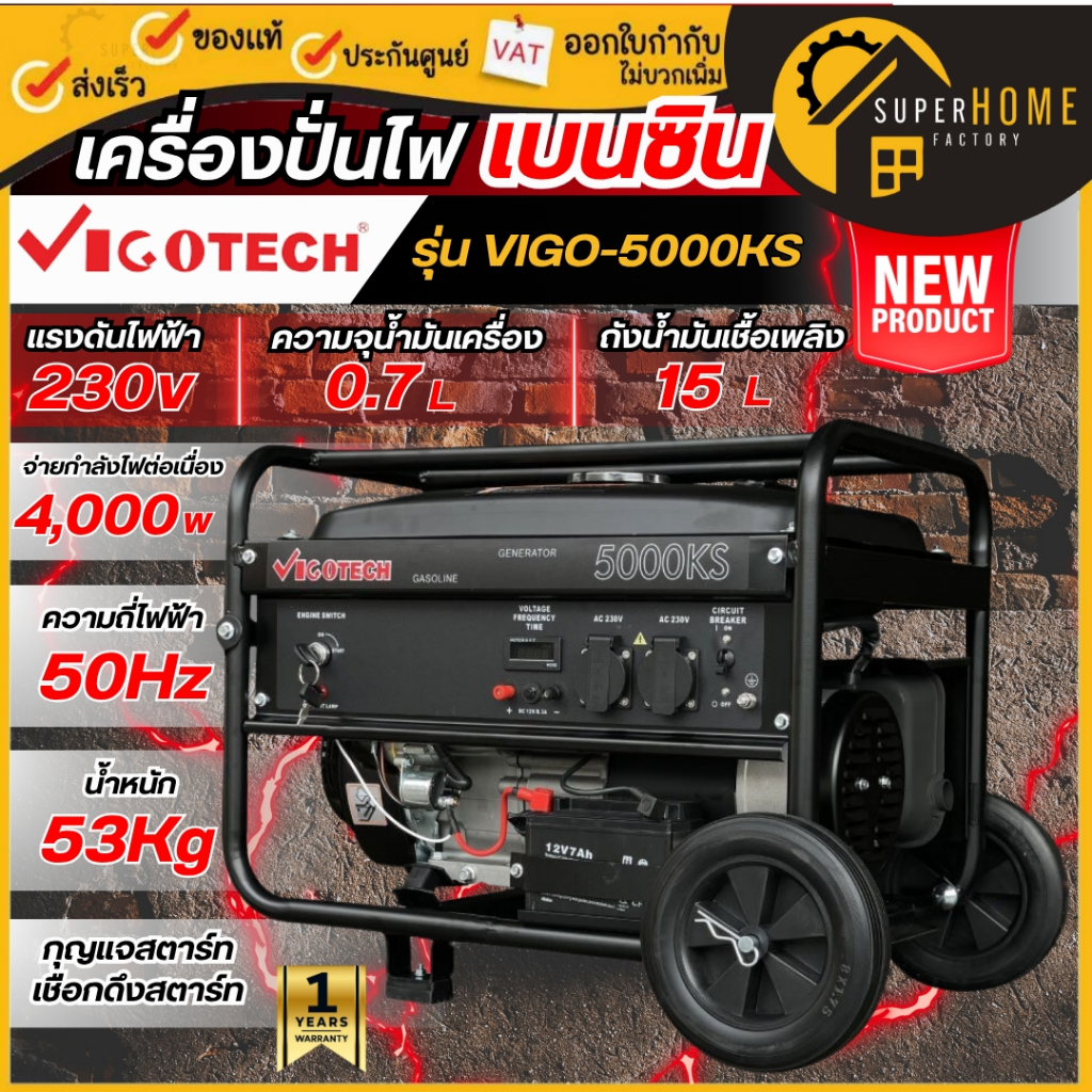 💥แท้ ส่งด่วน💥 VIGOTECH เครื่องปั่นไฟ เบนซิน รุ่น VIGO-5000KS ขนาด 4000 วัตต์ กำลัง 7.5 แรง ปั่นไฟ เครื่องกำเนิด