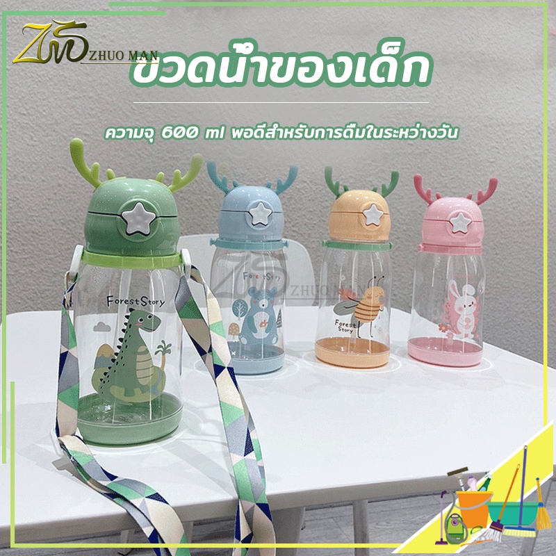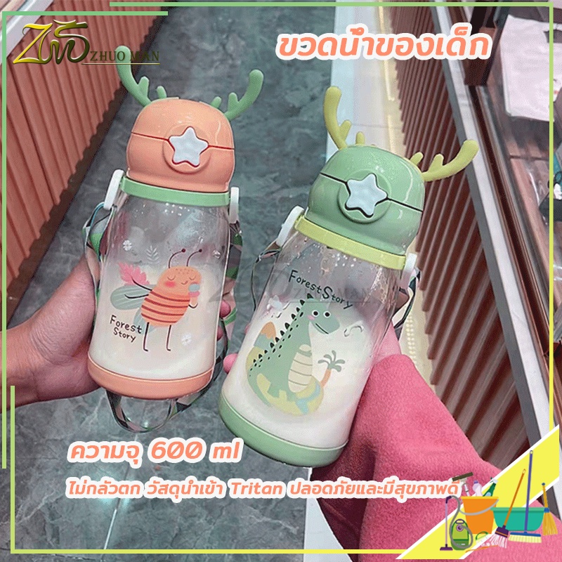 ขวดน้ำ ขวดน้ำของเด็ก600ML กระติกน้ำ กระติกน้ำนักเรียน พร้อมหลอดดูด BPA ไร้สารพิษ เป็นมิตรกับสิ่งแวดล้อม