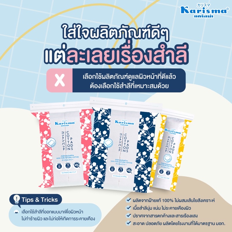 Karisma แคริสม่า สำลีเพื่อผิวหน้า สำหรับผิวแพ้ง่าย