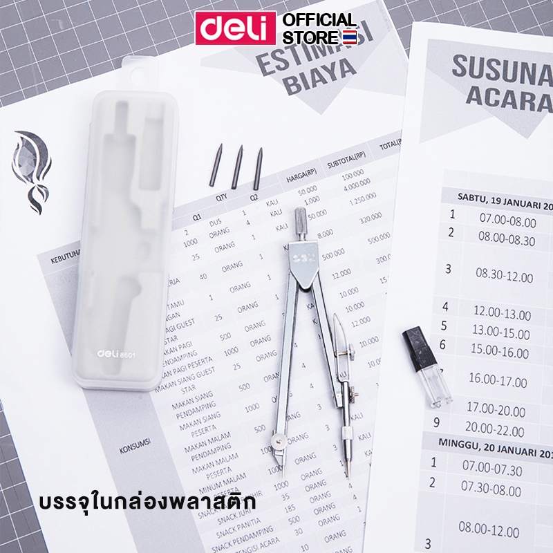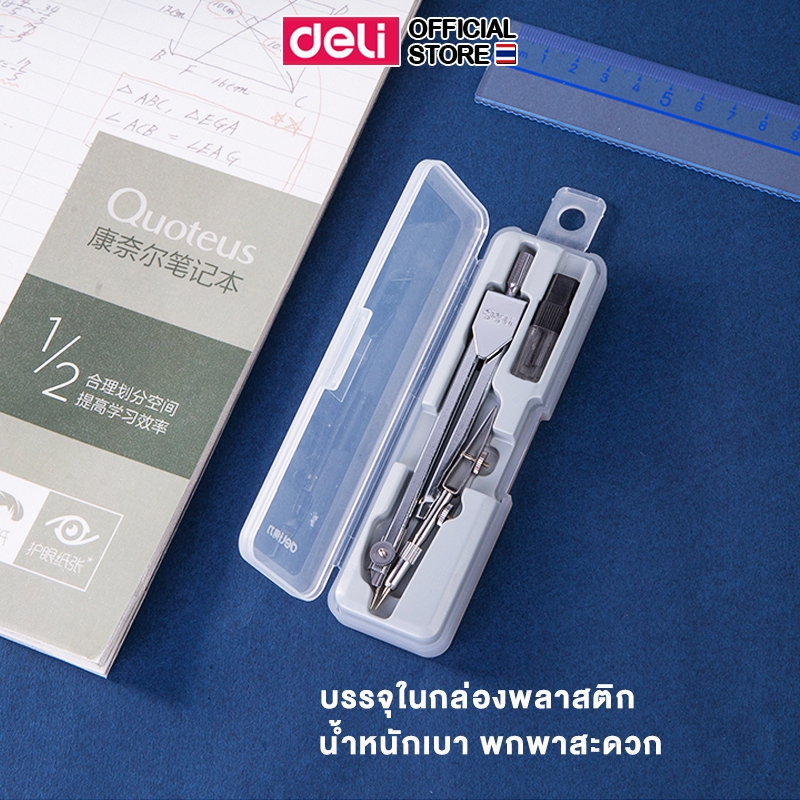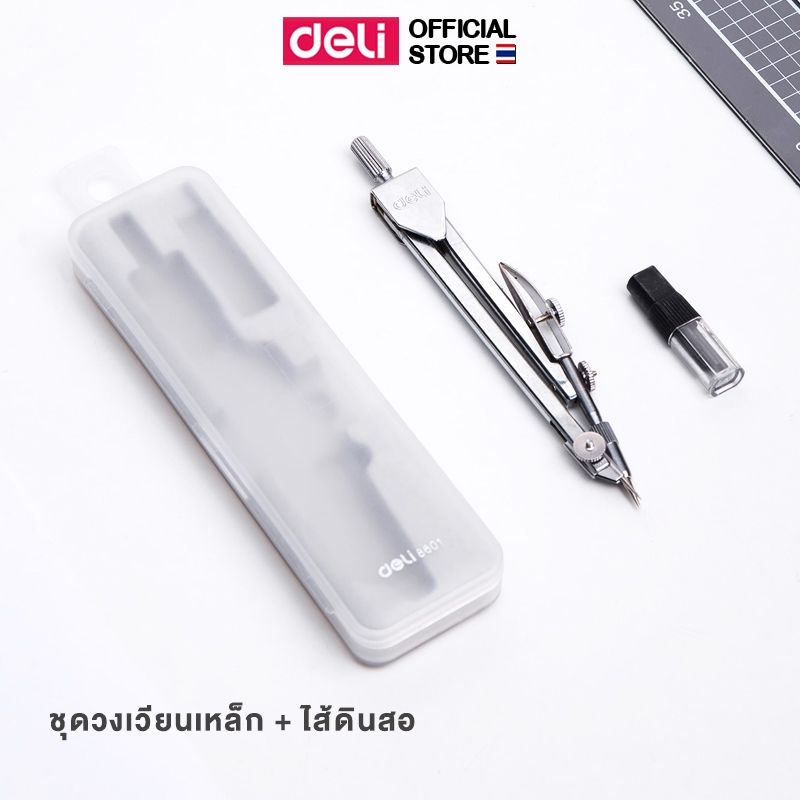 วงเวียนเหล็ก Deli ชุดวงเวียนไส้ดินสอ วงเวียน วงเวียนเขียนแบบ เครื่องเขียน ชุดวงเวียน เรขาคณิต อุปกรณ์การเรียน (1 ชุด)