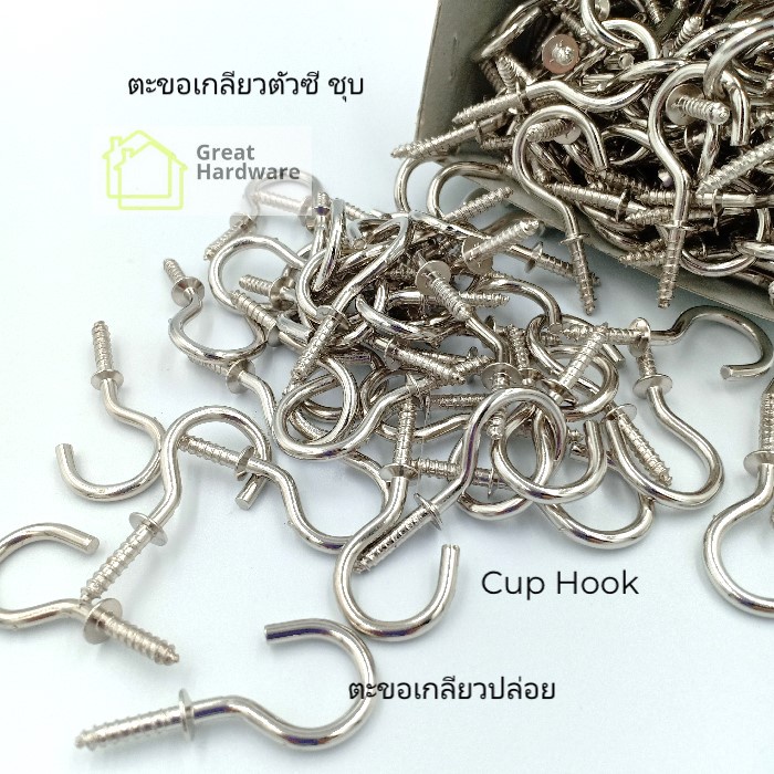 ตะขอตัวซี ปลายแหลม เป็นเกลียว 1กุรุส(144อัน) Cup Hookสำหรับแขวนของ DIY แขวนผ้า ขอแขวน ชุบนิเกิล