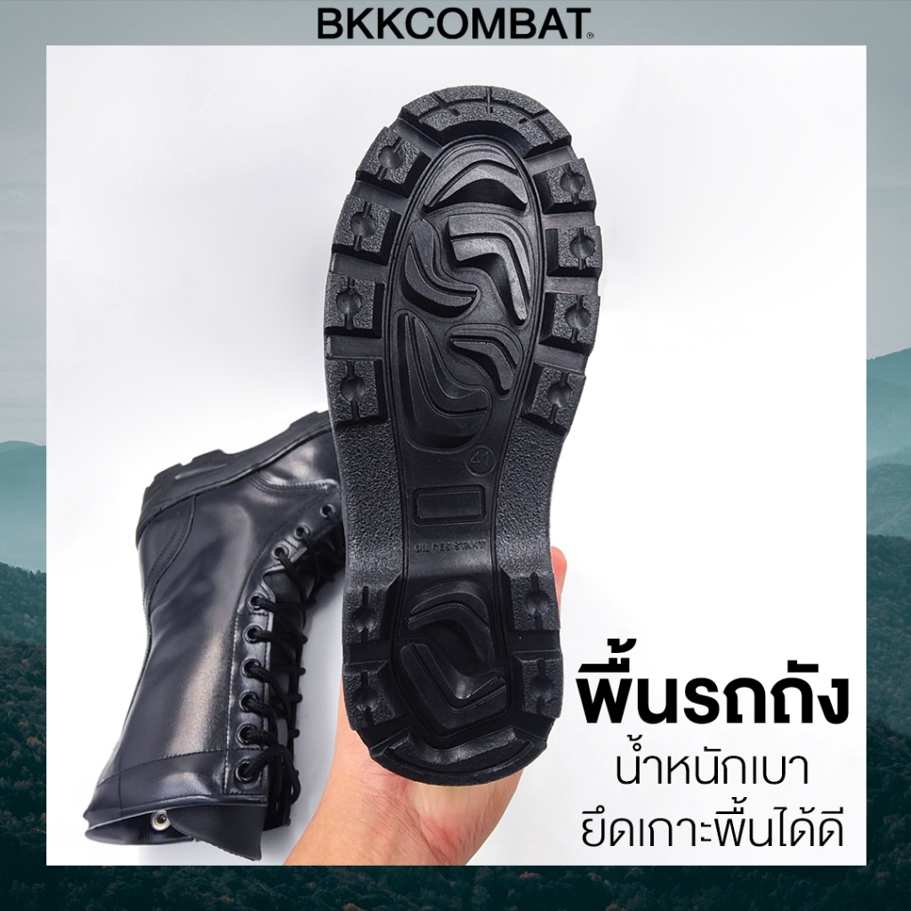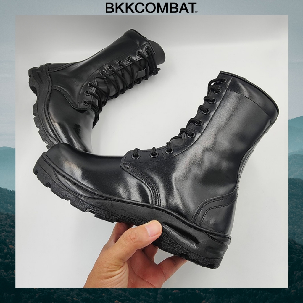 คอมแบท รหัส 808 ตาไก่ ซิป พื้นรถถัง หนังวัวแท้ หนังขัดมัน สูง10นิ้ว ทรงW หัวโต เบาที่สุด