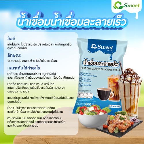 (ยกลัง 12 ถุง) โฉมใหม่ น้ำเชื่อมละลายเร็ว ตรา ซีสวีท น้ำเชื่อมตัวซีบนใบไม้ 800 ml.