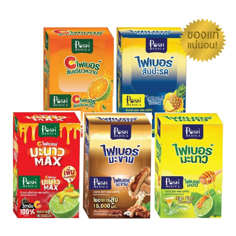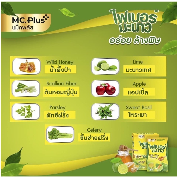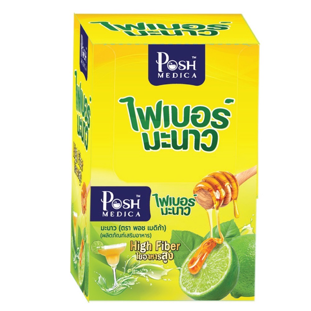 Mc.Plus Fiber/ Posh Medica Fiber พอช เมดิก้าแม็คพลัส ไฟเบอร์ มะนาว & สับปะรด & มะขาม ช่วยขับถ่าย แก้ท้องผูก 1กล่อง(6ซอง)