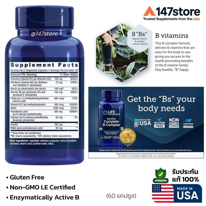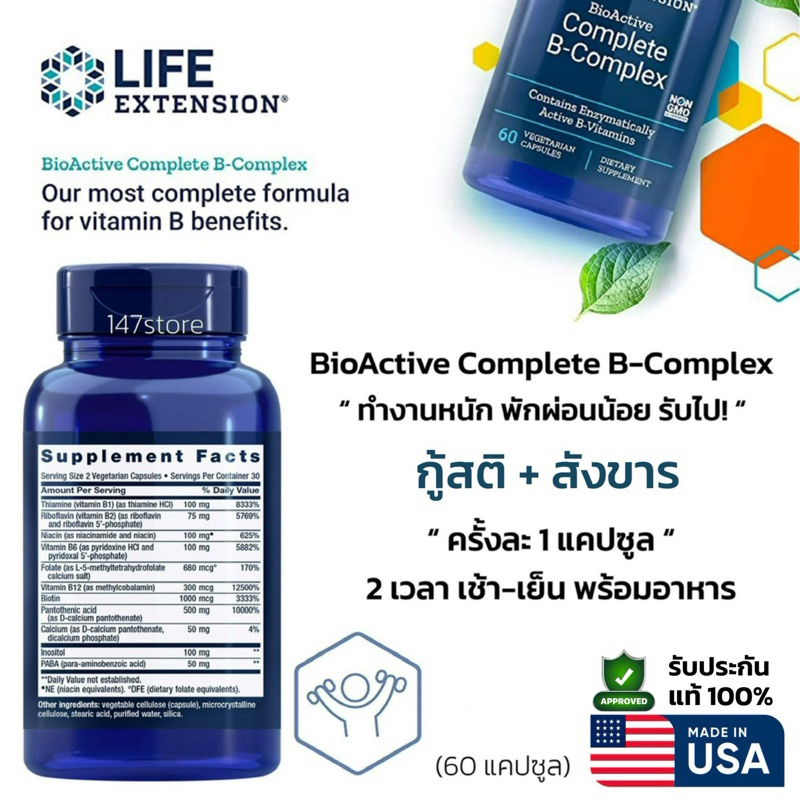 [แท้100%] Life Extension USA วิตามินบีรวม BioActive B-Complex | บำรุงพลังงาน-ระบบประสาท สำหรับคนพักผ่อนน้อย | 60 แคปซูล