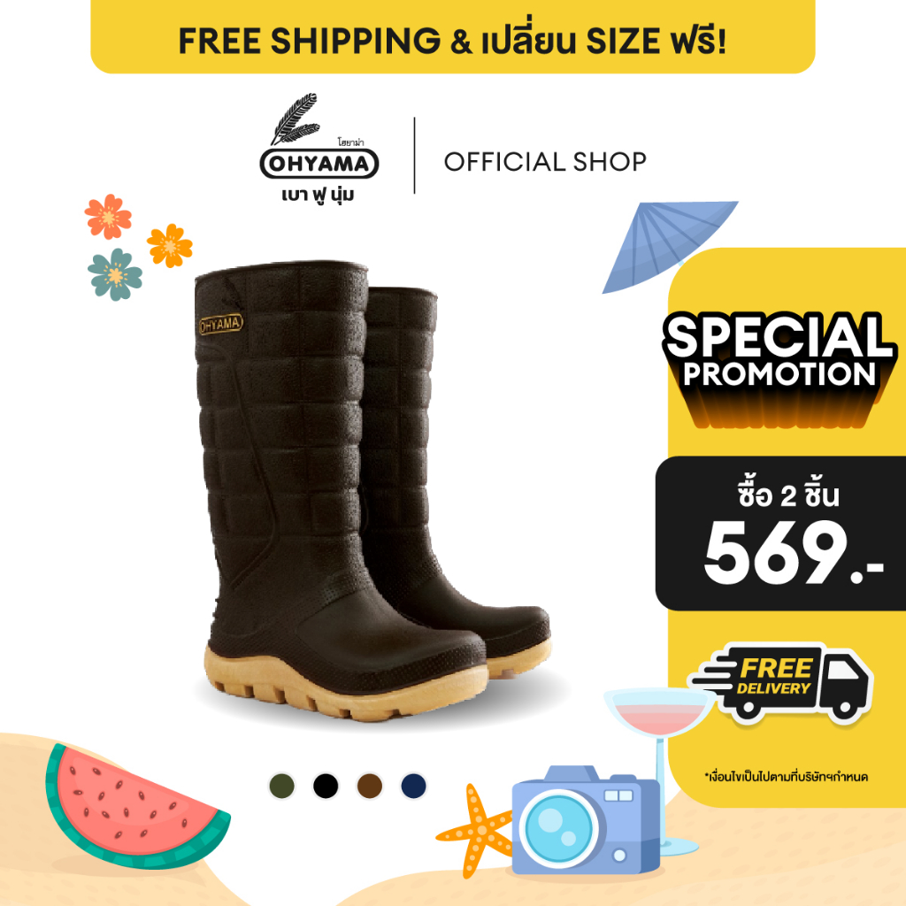(ส่งฟรี)รองเท้าบูทโอยาม่า สูง 15 นิ้ว Ohyama รุ่น Extra B.003 รองเท้าบูทนุ่มฟู กันน้ำ กันลื่น ทำสวน ก่อสร้าง ทำความสะอาด