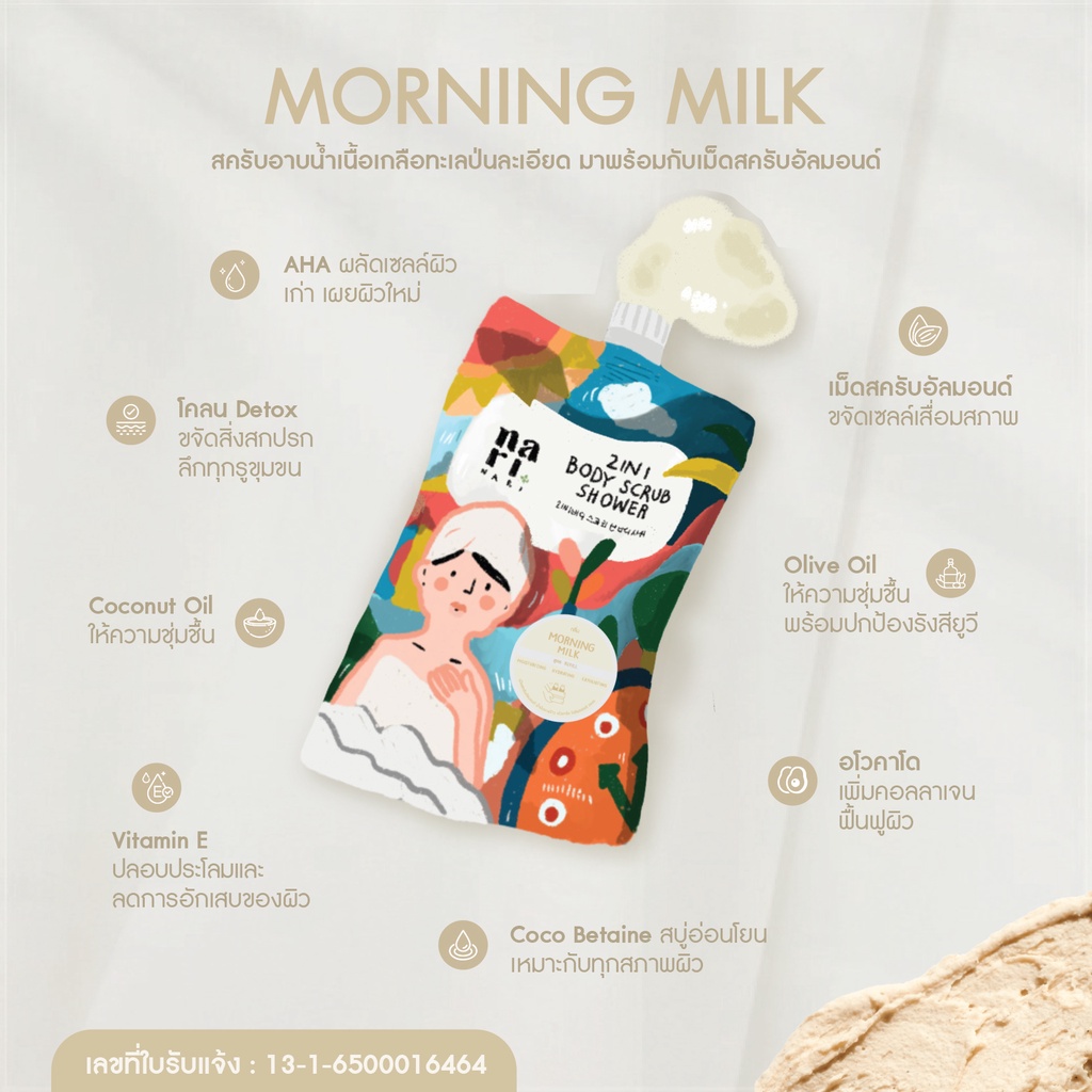 2in1 สครับอาบน้ำกลิ่น Morning Milk 350g. เนื้อมาร์ชเมลโล ไม่บาดผิว สูตรเติมน้ำให้ผิว ชุ่มชิ้นยาวนาน