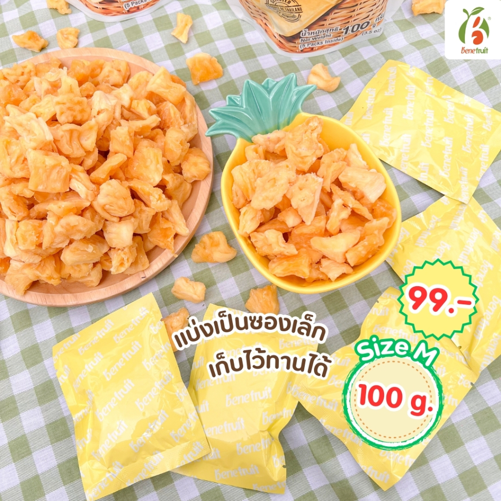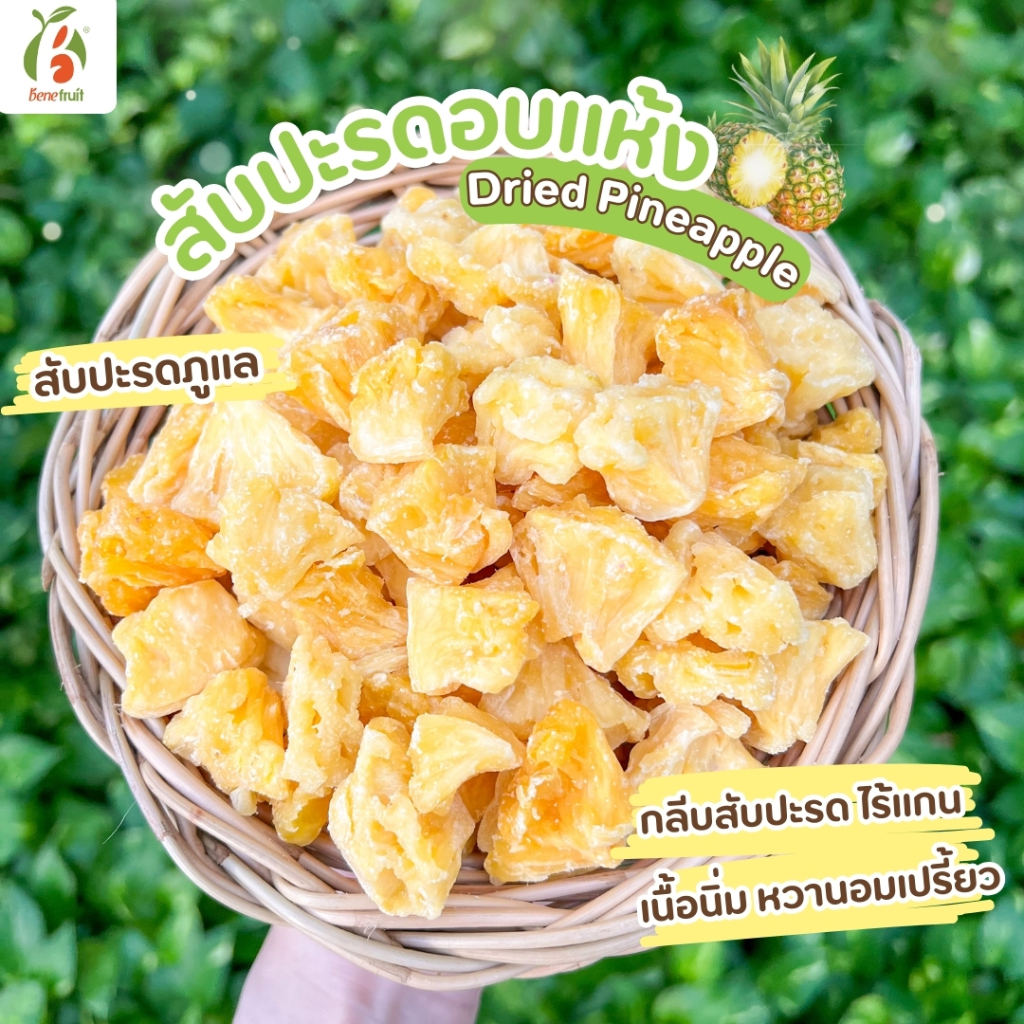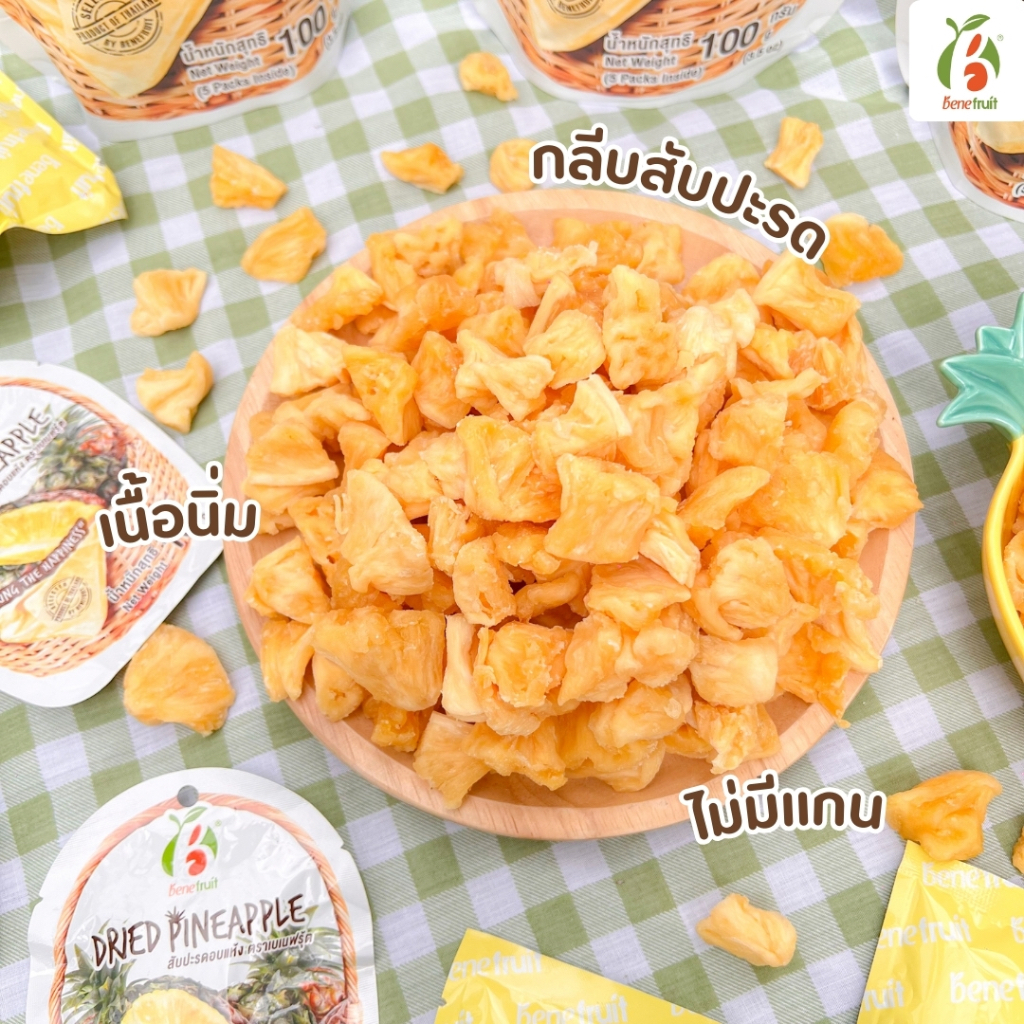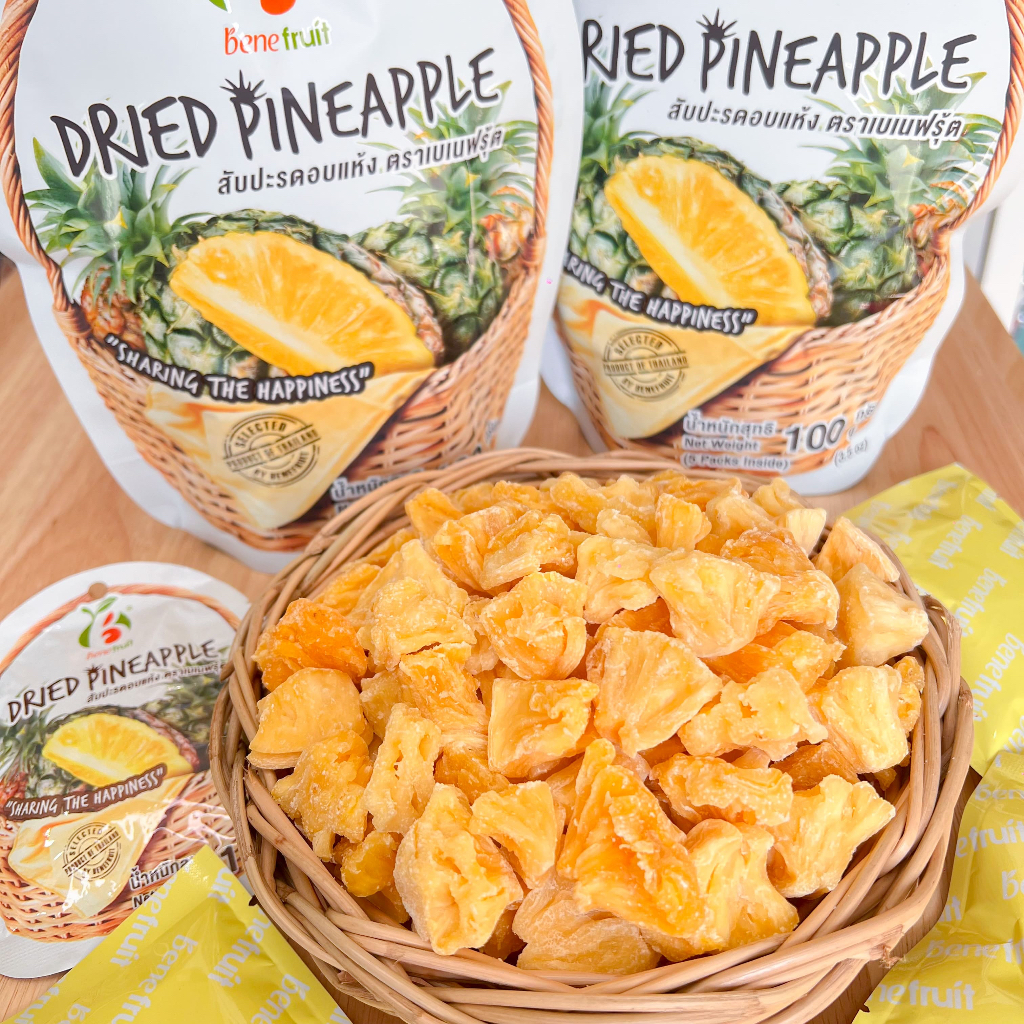 Benefruit สับปะรดอบแห้ง🍍กลีบสับปะรดตราดสีทอง ผลไม้อบแห้งเกรดส่งออก สูตรน้ำตาลต่ำ (Dried Pineapple, Low Sugar) ขนาด 100g.