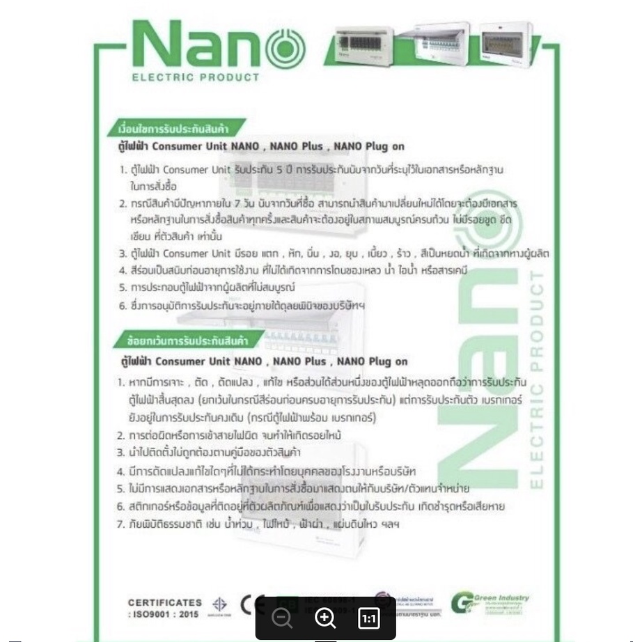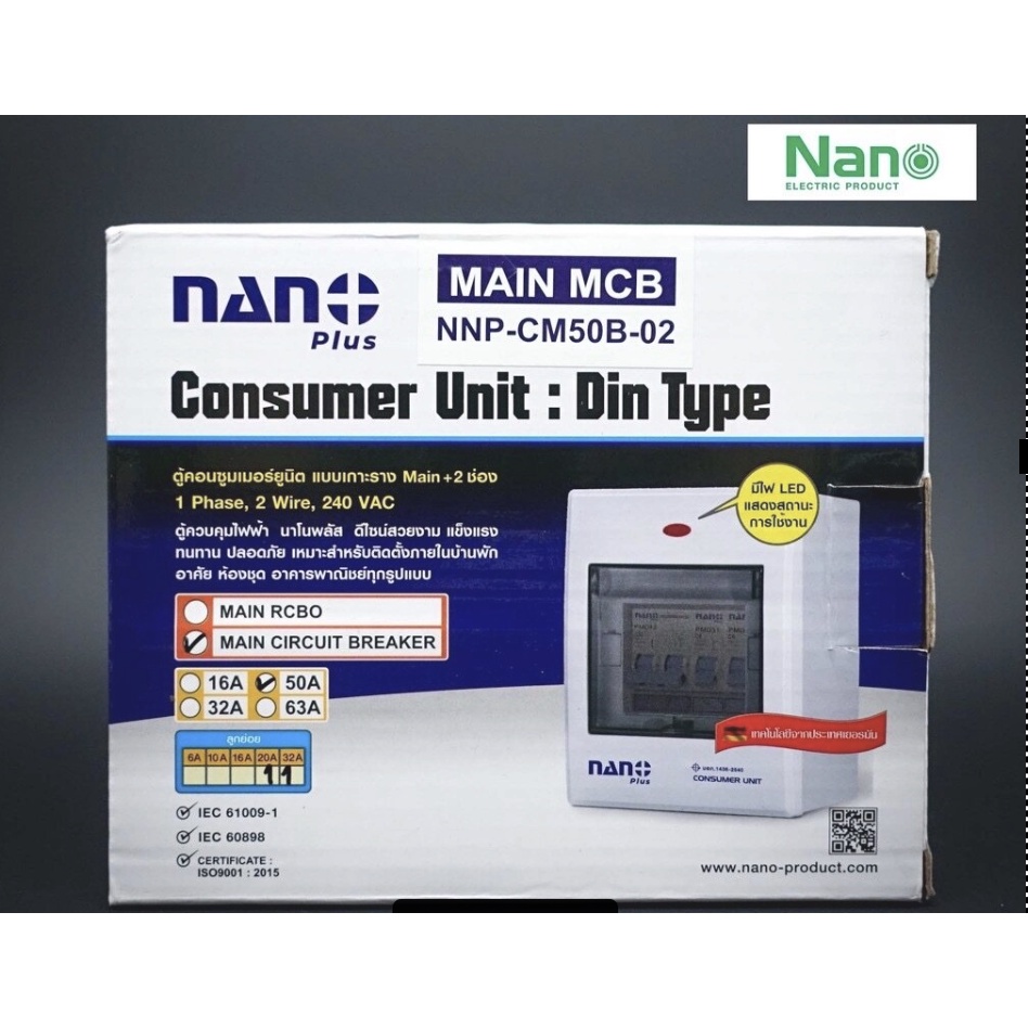 Nano ตู้คอนซูมเมอร์ ยูนิต NN-CM NNP-CR CONSUMER UNIT NANO PLUS 2 ช่อง เมนเบรคเกอร์ธรรมและ กันดูด RCBO NNP