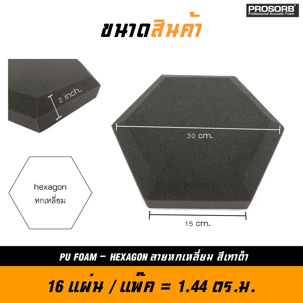 (16 ชิ้น/แพ๊ค) ฟองน้ำ-แผ่นซับเสียง Acoustic Foam HEXAGON หกเหลี่ยม ลดเสียงก้องสะท้อน แบรนด์ Prosorb