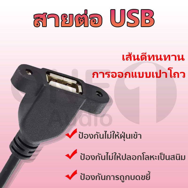 OneAudio สายต่อ USB หน้าเพลท มีรูขันน็อต ตัวเมีย 30cm จัยึดกับเพลทตู้ลำโพงบลูทูธ สาย usb ผู้เมีย 30cm มีรูยึดน๊อต