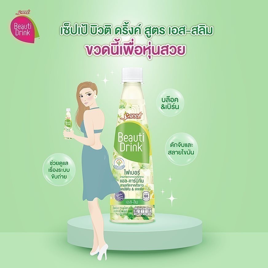 [ยกลัง] เซ็ปเป้ บิวติดริ้งค์ เครื่องดื่มรสองุ่นขาว สูตร เอส สลิม Sappe Beauti Drink - S Slim จำนวน 24 ขวด