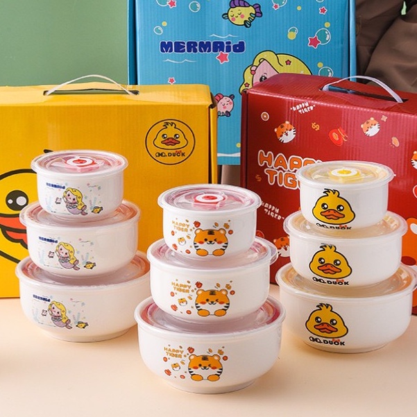 เข้าไมโครเวฟได้ ชาม ชามกระเบื้องเซรามิก ชุดเซ็ทพร้อมฝาปิด