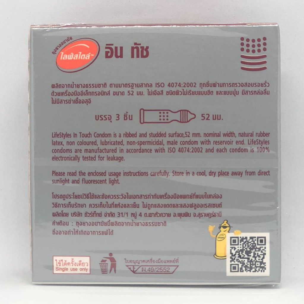 LifeStyles In touch Condom ++ซื้อ 1 ฟรี 1 กล่อง++ถุงยางอนามัย ไลฟ์สไตล์ อิน ทัช ผิวไม่เรียบ แบบขีด + มีปุ่ม ขนาด 52 มม.