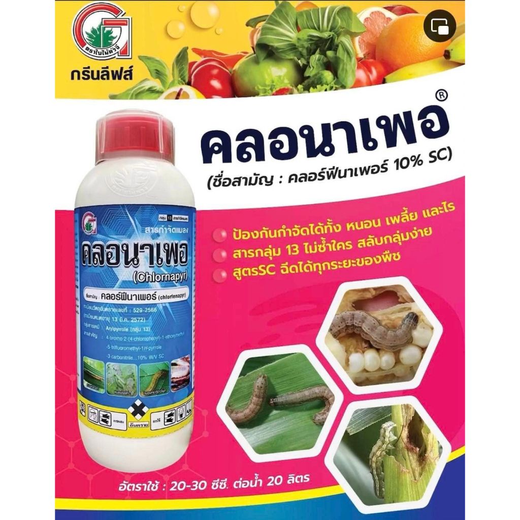 คลอนาเพอ 1 ลิตร ตรากรีนลีฟส์ คลอฟีนาเพอร์ กำจัดแมลงชนิดดูดซึมและน๊อค