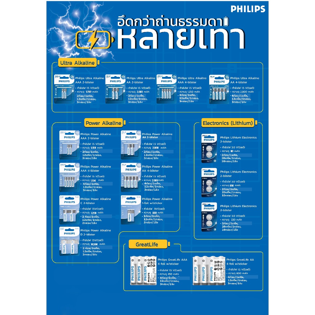 PHILIPS ถ่านกลม Button cell Lithium Electronics แพ็ก 2 ก้อน สำหรับ นาฬิกา