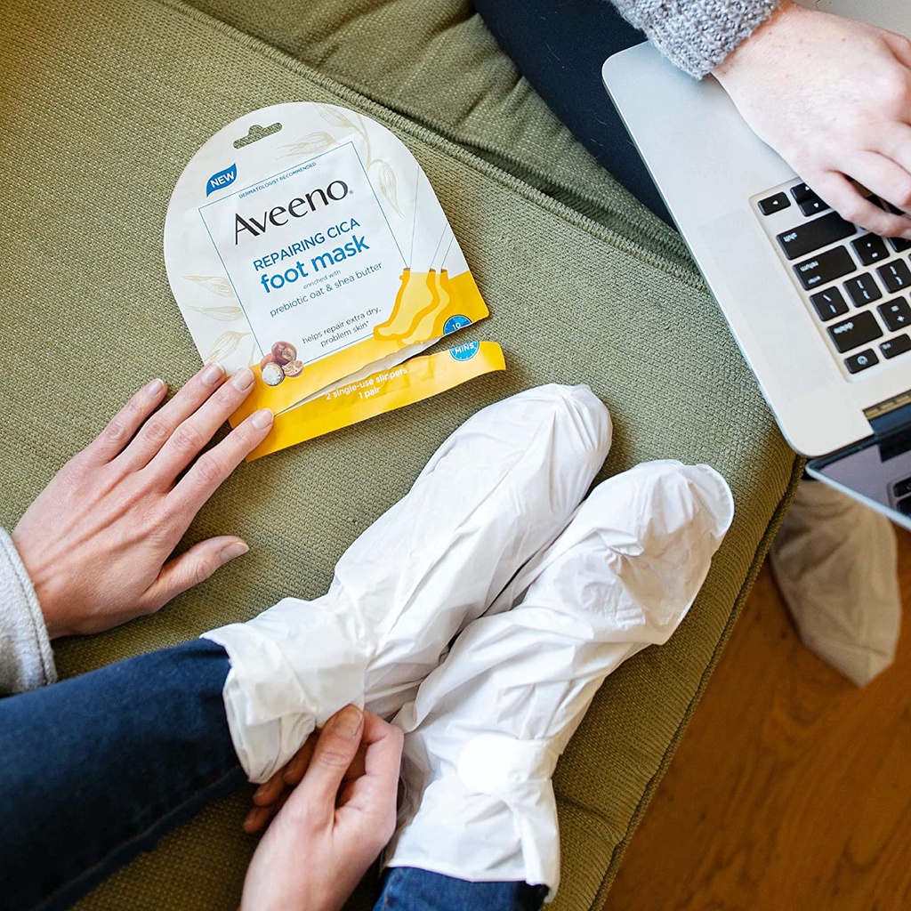 Aveeno Repairing Cica Foot Mask 2 Single-Use Slippers ถุงเท้าสำหรับมาส์กเท้า (1 คู่)
