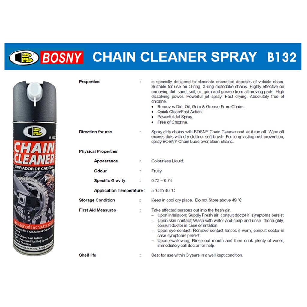 น้ำยาล้างโซ่ น้ำยาล้างจานเบรค บอสนี่ Bosny สเปรย์ทำความสะอาดโซ่ B132 สเปรย์ทำความสะอาดจานเบรค B134