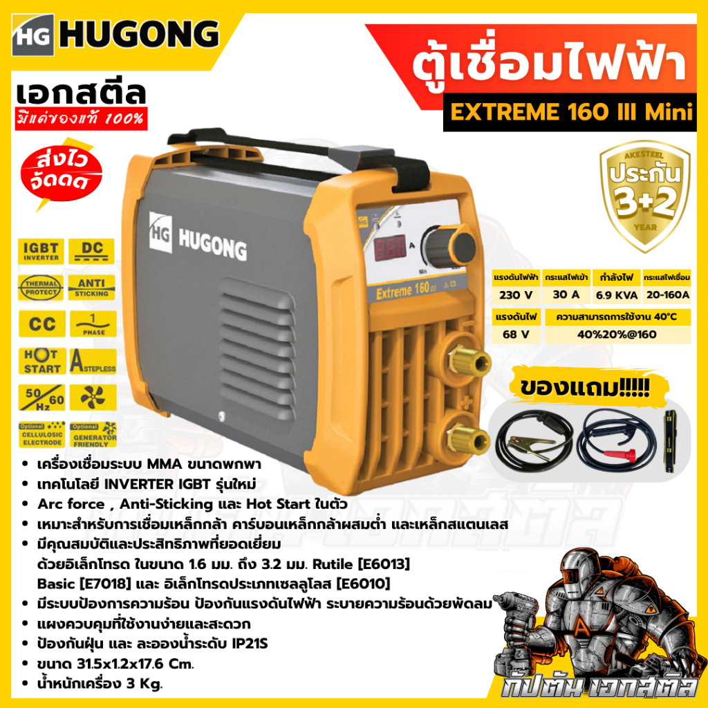 (ถูกสุด) HUGONG ตู้เชื่อม เครื่องเชื่อมไฟฟ้า INVERTER ฮูกง EXTREME 120-200Mini ETIG 200DP