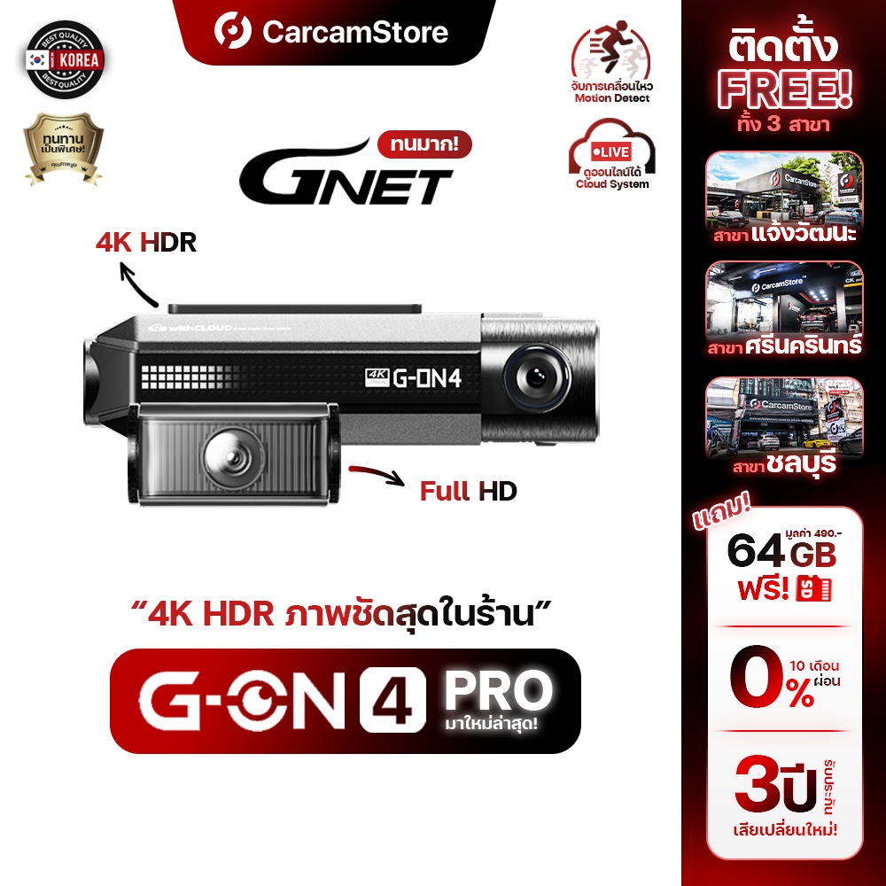 [ผ่อน 0% ได้][ภาพชัดมาก 4K HDR+] - กล้องบันทึกหน้าหลัง GNET G-ON4 PRO ใหม่! คุณภาพสูงจากเกาหลี บันทึกขณะจอด