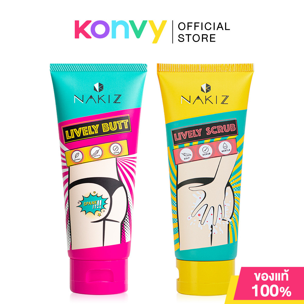 Nakiz Lively Butt 100ml นาคิส ครีมบำรุงผิวบริเวณบั้นท้าย ลบเลือนรอยดำ แตกลาย.