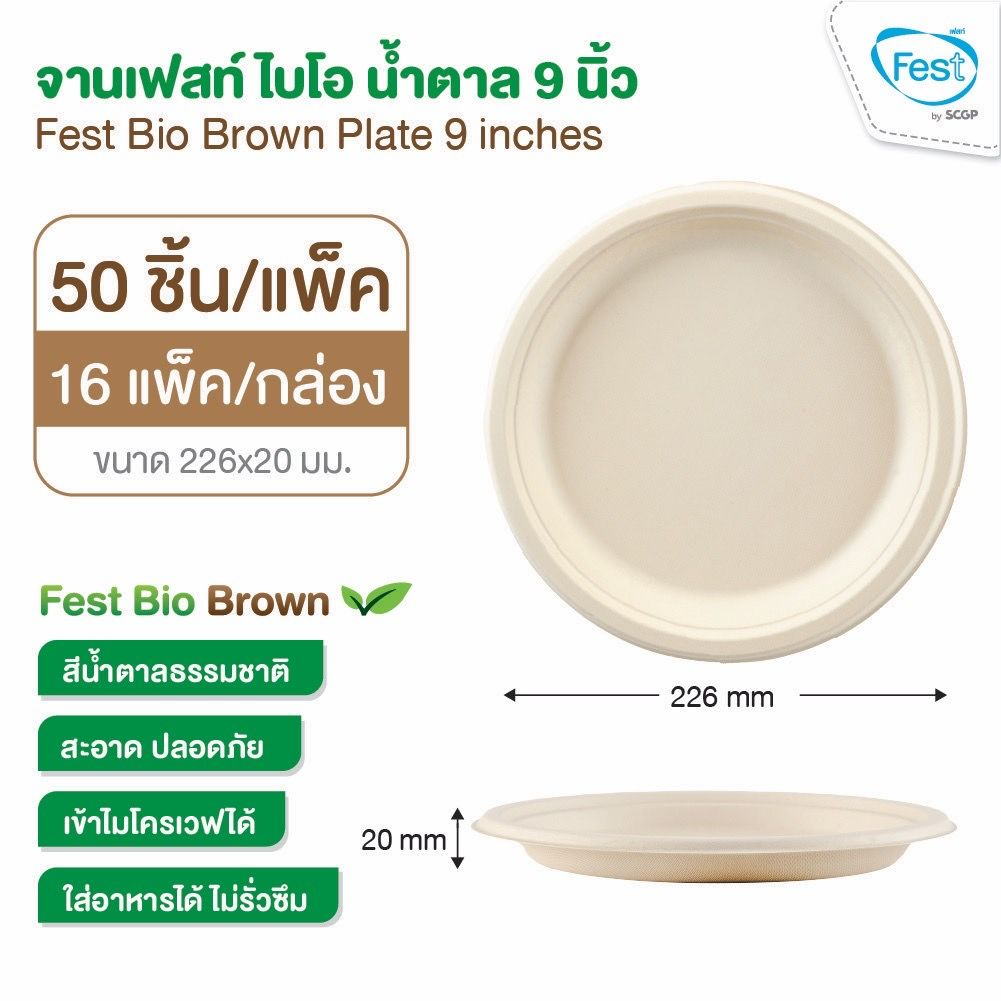 (ยกลัง) จานเยื่อ จานไบโอ ถาดรักษ์โลก ถาดเฟสท์ ไบโอ (สีน้ำตาล) ขนาด 6.5 7 8 9 10 นิ้ว (20BRP)