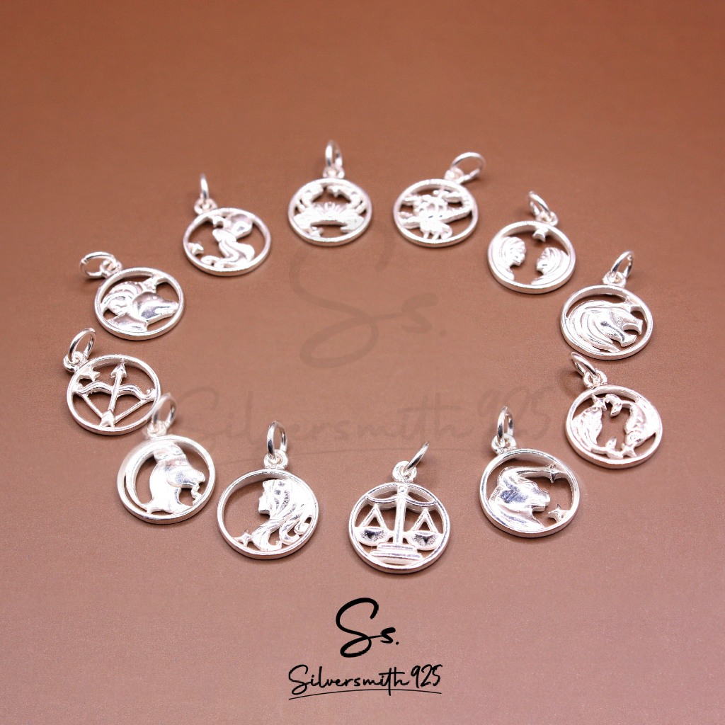 จี้ราศี 12 ราศี เงินแท้ 92.5% จี้เงินแท้ zodiac charm ขนาด 10mm จี้สำหรับสร้อยคอ สร้อยข้อมือ