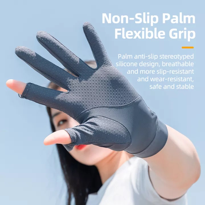 【TH Delivery】ROCKBROS ถุงมือผ้าใยเย็น การออกแบบนิ้วพับได้ UPF50+ ระบายอากาศ กันลื่น ยืดหยุ่นสูง อุปกรณ์เสริมสำหรับกีฬากลางแจ้ง