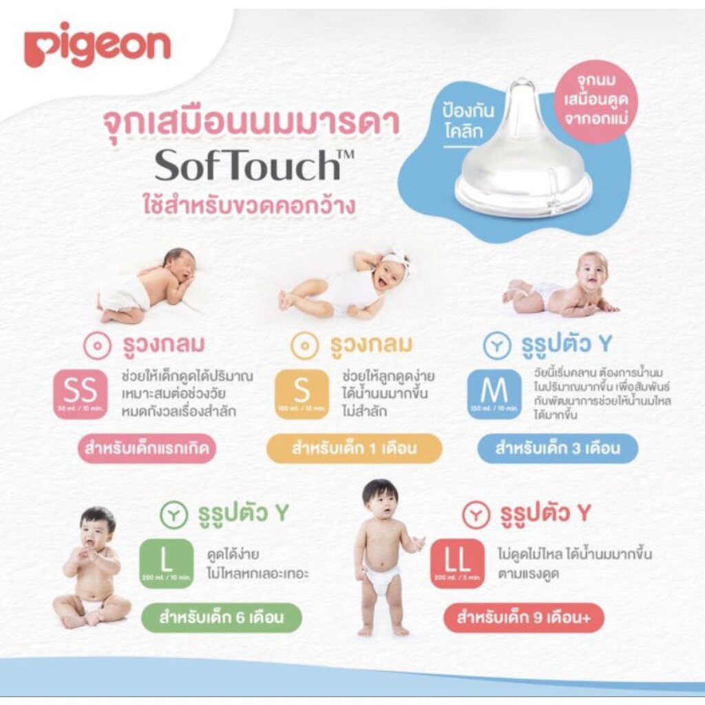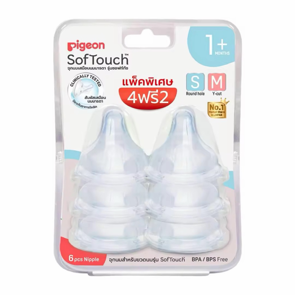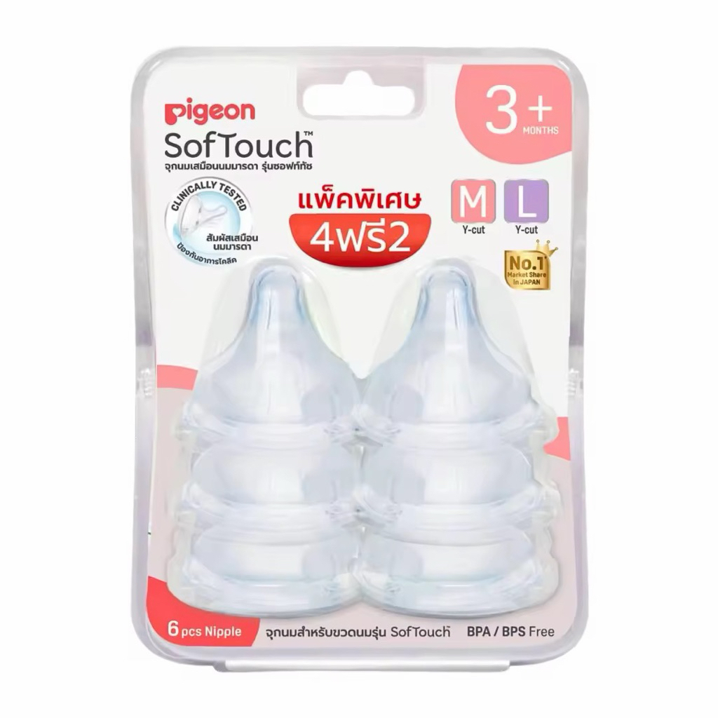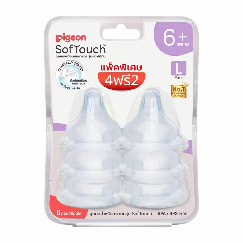(4แถม2) Pigeon พีเจ้น จุกนมเสมือนฯซอฟท์ทัส ไซส์ S,M,L,LL,LLL แพ็ค 6 จุก