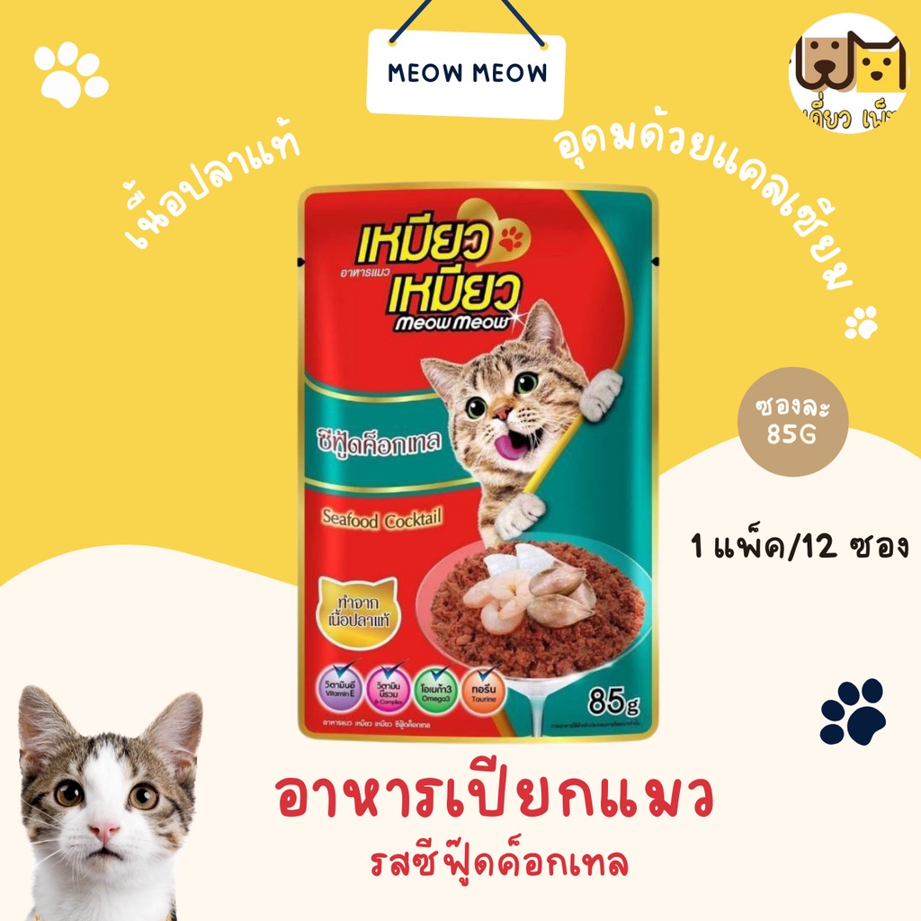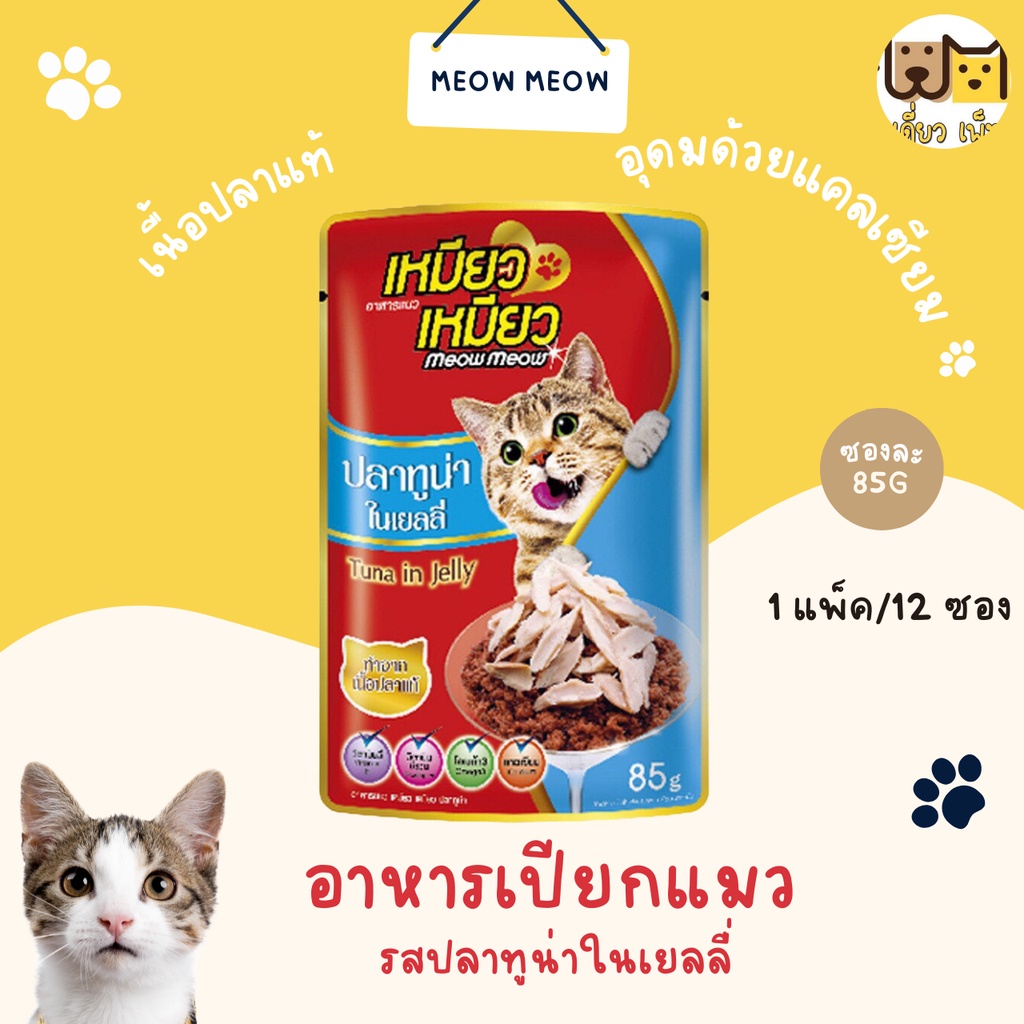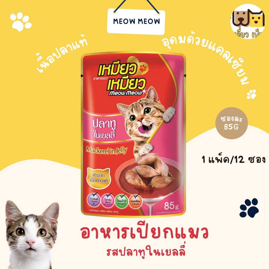 (ยกโหล12 ซอง)Meow Meow เหมียวเหมียว อาหารเปียกแมวแบบซอง ขนาด 85 กรัม มี 8 รสชาติ