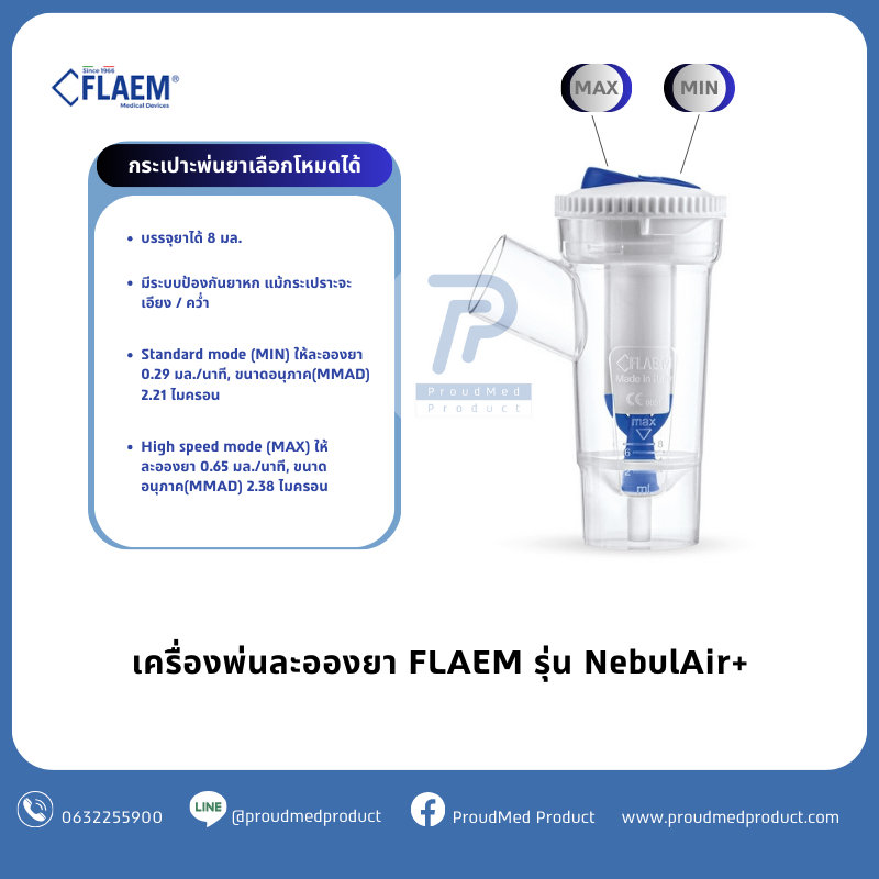 FLAEM เครื่องพ่นละอองยา รุ่น NebulAIR+ พ่นเร็ว พ่นแรง ให้ละอองยาอนุภาคเล็ก