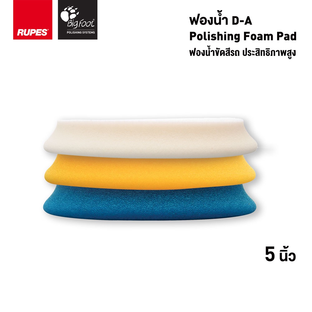 RUPES ฟองน้ำขัดสีรถ D-A รุ่นใหม่ ขนาด 5 นิ้ว รูเปส DA High Performance Polishing Foam Pad ขัดลบรอย ขัดเงา เคลือบสี