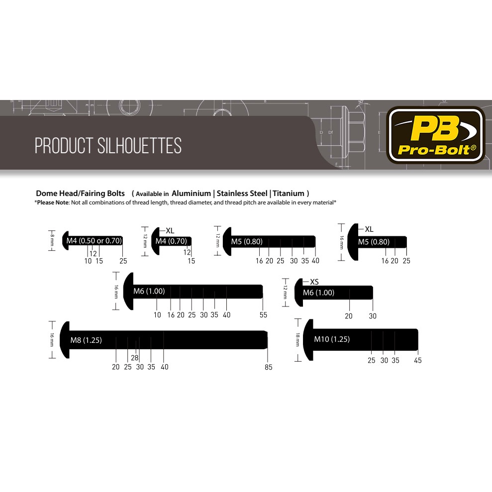 Pro-Bolt อลูมิเนียม หัวโดม M6x10,16,20,25,30,35,40mm